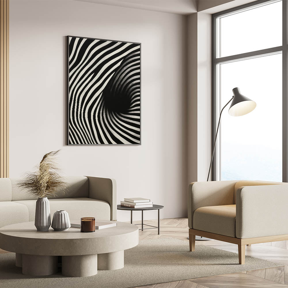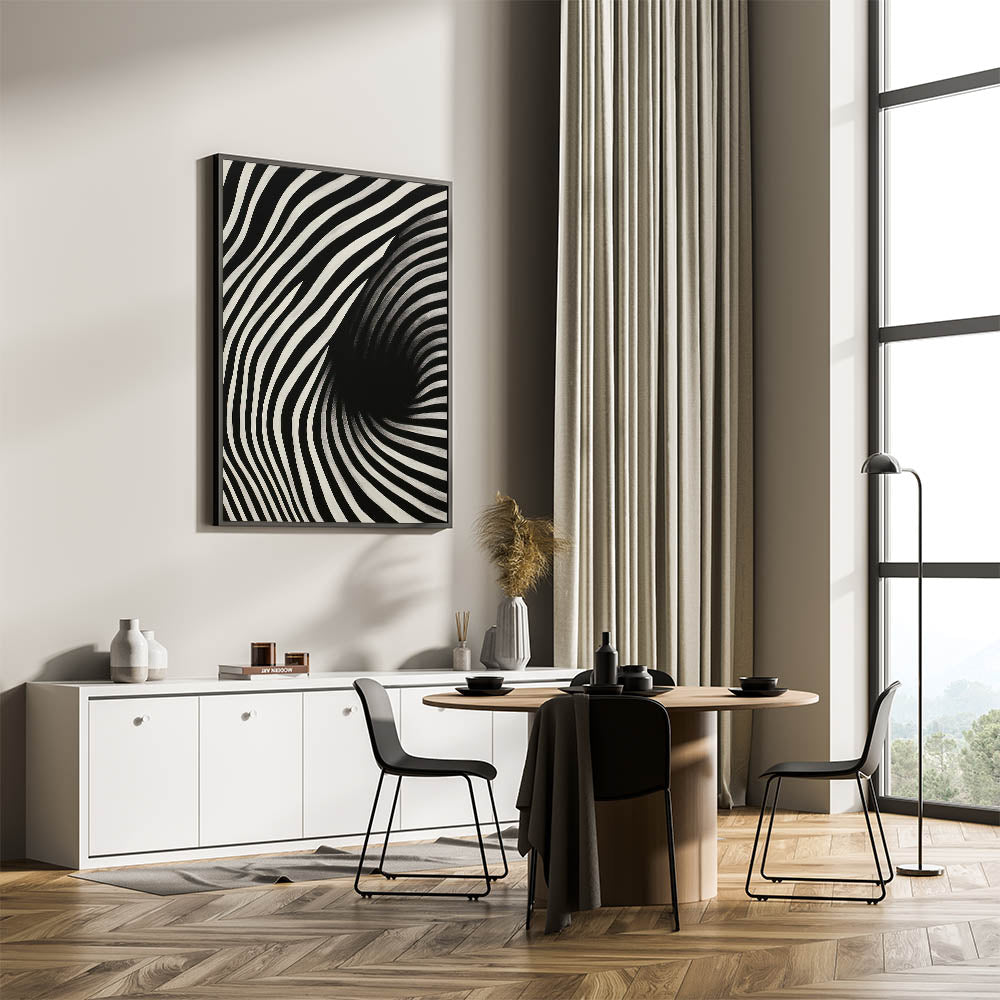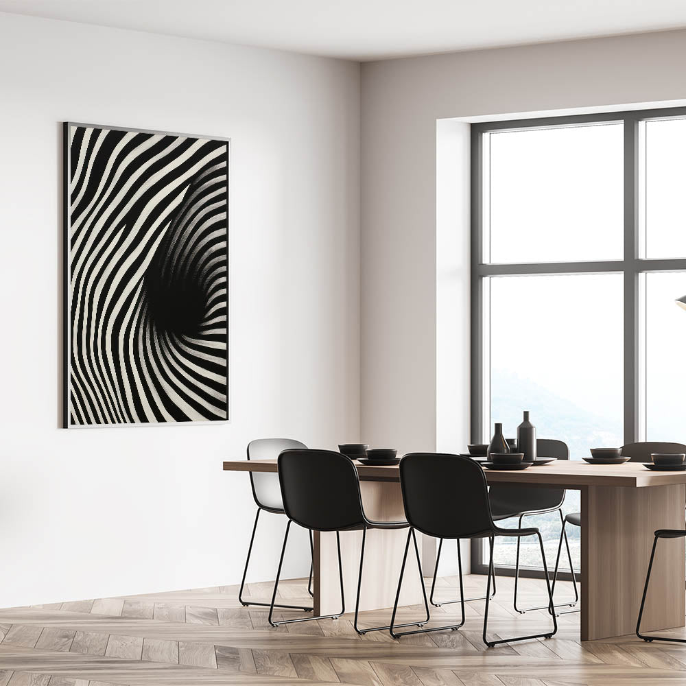 Experience the dynamic energy of the "Abstract Electric Spiral Canvas," a mesmerizing piece of electric wall art that plays with optical illusions through bold black and white lines. This modern electric decor creates a visual vortex effect, drawing viewers into its captivating and hypnotic design. Perfect for adding a sense of movement and depth to contemporary spaces, this abstract electric painting is both eye-catching and thought-provoking.