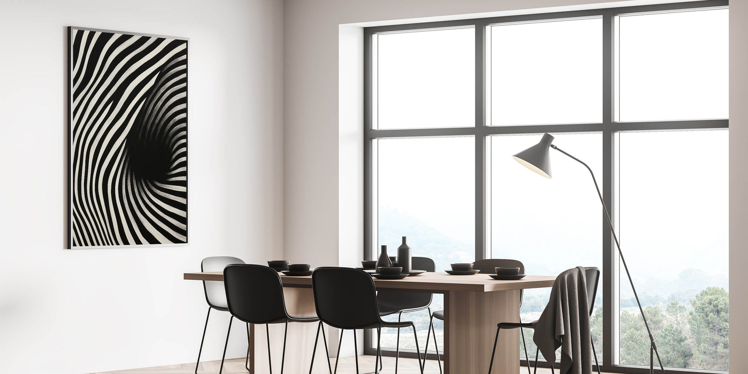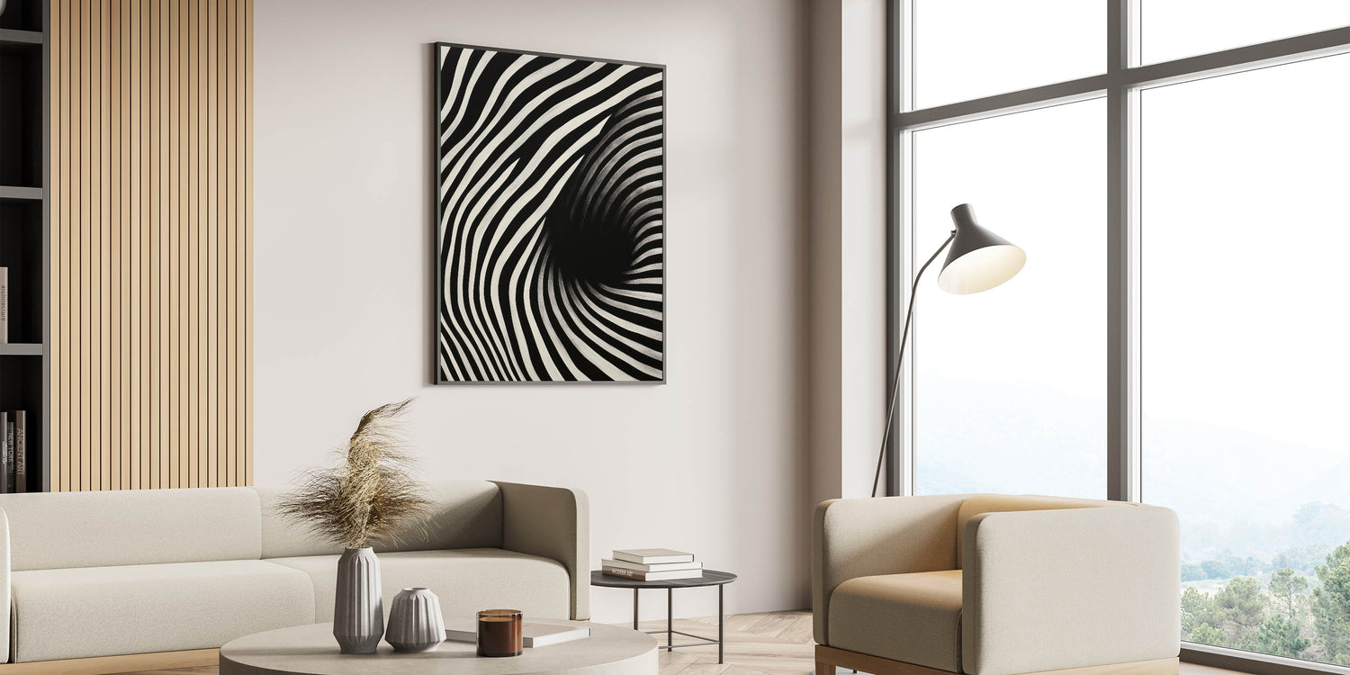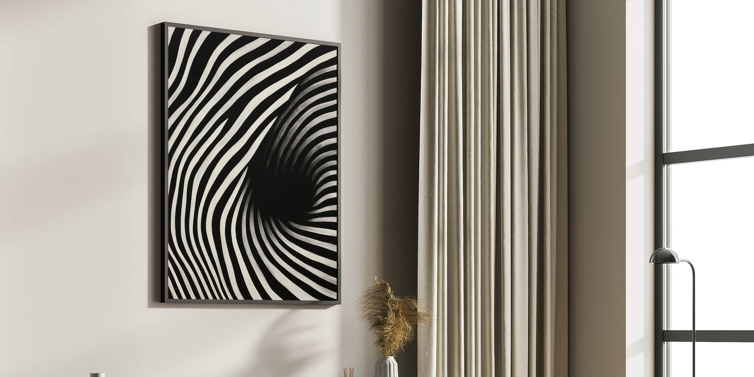 Experience the dynamic energy of the "Abstract Electric Spiral Canvas," a mesmerizing piece of electric wall art that plays with optical illusions through bold black and white lines. This modern electric decor creates a visual vortex effect, drawing viewers into its captivating and hypnotic design. Perfect for adding a sense of movement and depth to contemporary spaces, this abstract electric painting is both eye-catching and thought-provoking.