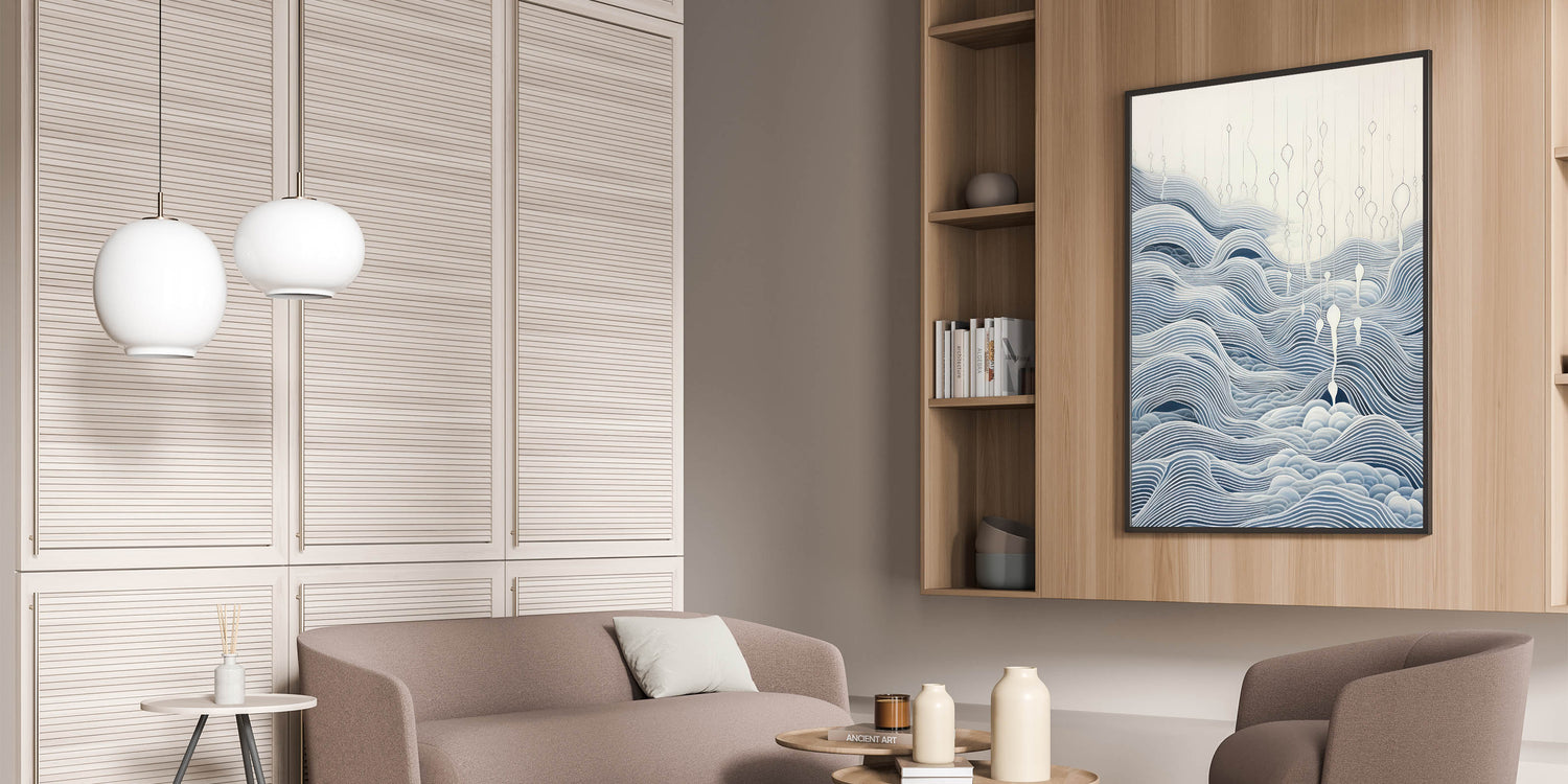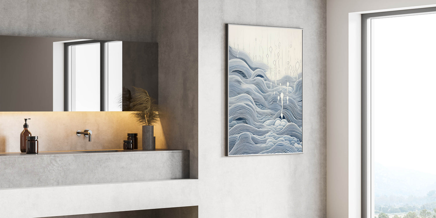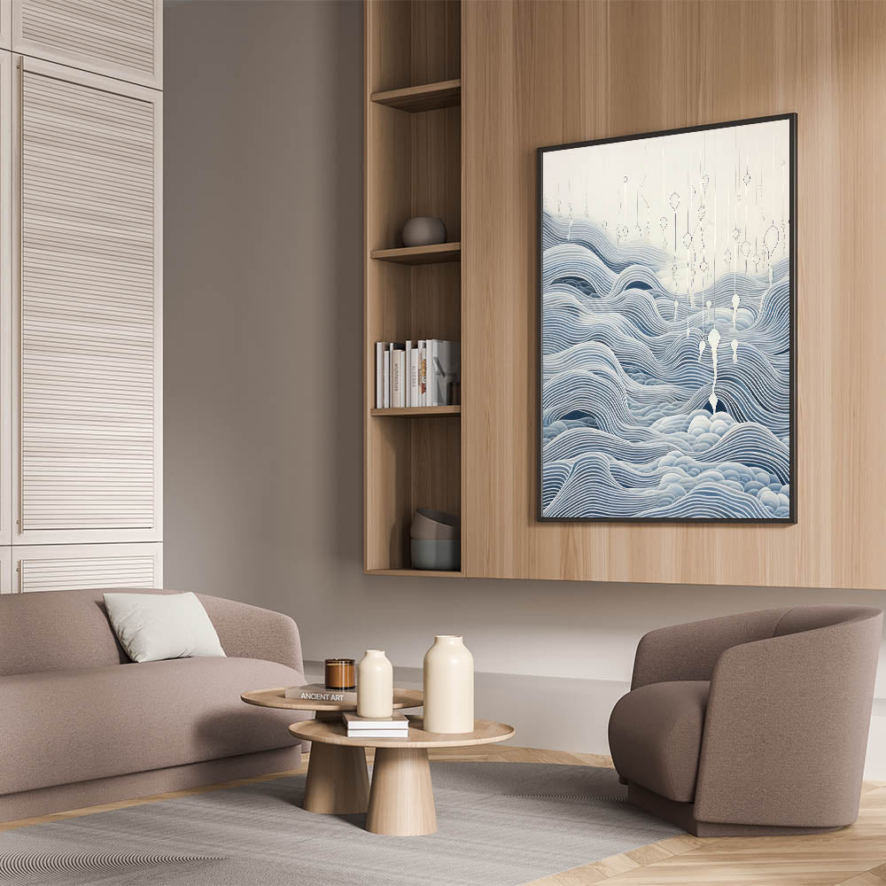 This electric art canvas is designed to bring tranquility and visual appeal, whether displayed as a sleek acrylic glass piece or a classic framed print. Its flowing waves and soft hues create an inviting atmosphere, perfect for those looking to enhance their space with a touch of elegance and calm.