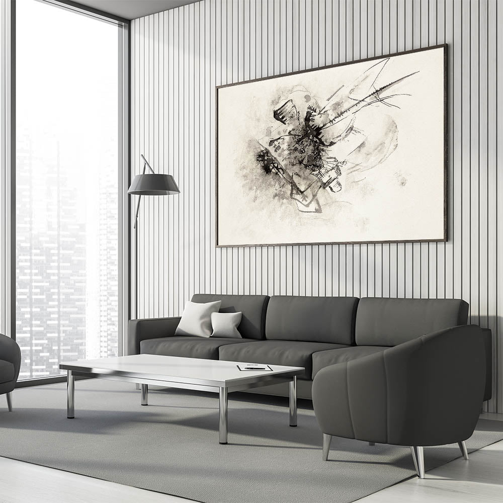 Dive into the world of abstraction with this modern wall art, an untitled monochromatic piece that exemplifies minimalist modern decor. Rendered in shades of black, gray, and white, this artwork uses expressive lines and abstract shapes to evoke a sense of mystery and depth. Perfect for contemporary art enthusiasts, this unique modern art piece complements any minimalist or industrial decor, adding sophistication and intrigue to your space.
