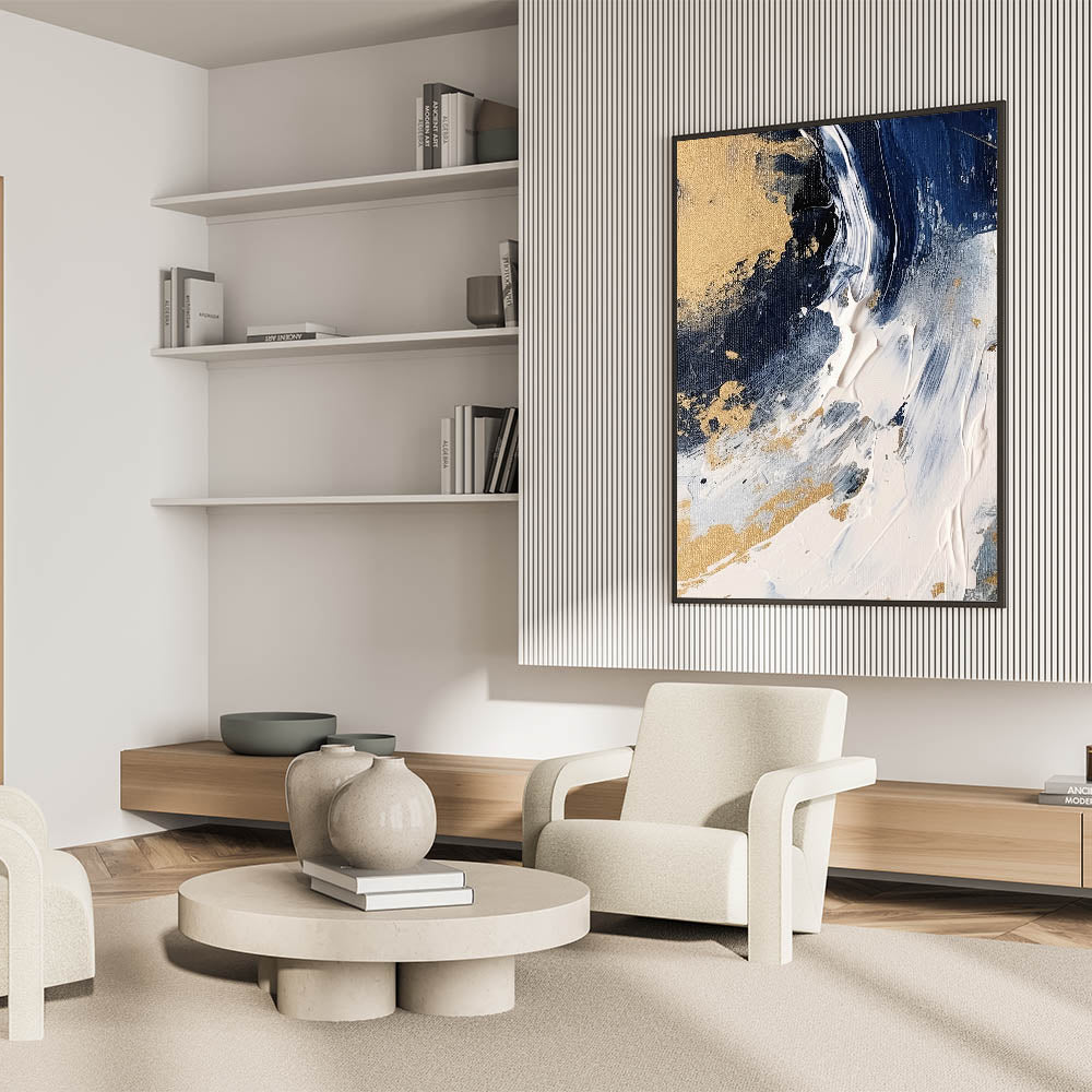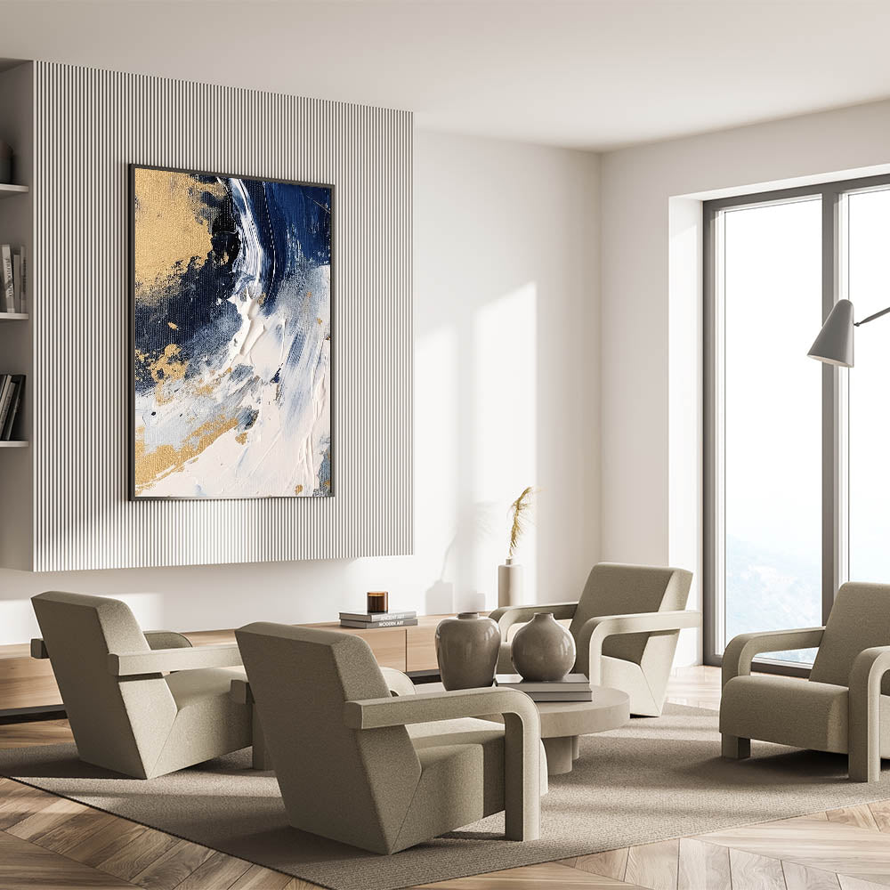 Abstract Navy and Gold Glam Wall Art - Chic Decor for Modern Homes