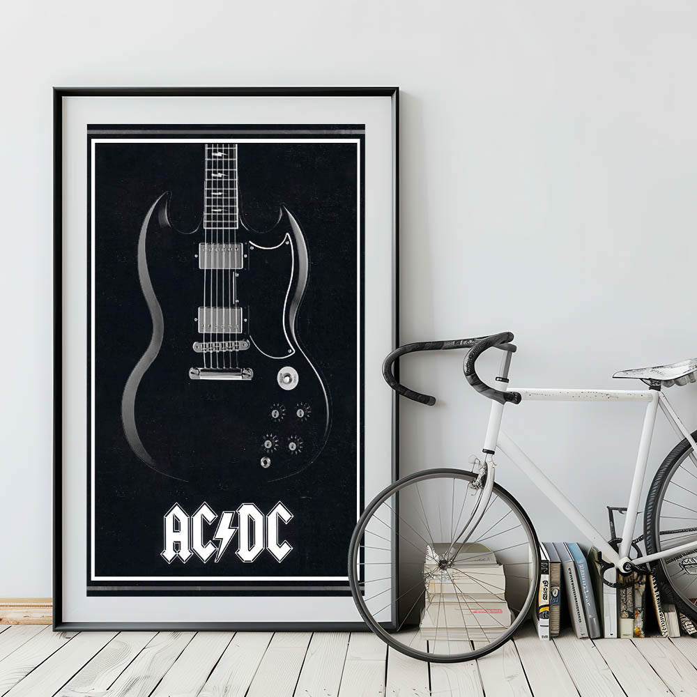 AC/DC Guitar Poster - Black SG Guitar Vintage Wall Art
