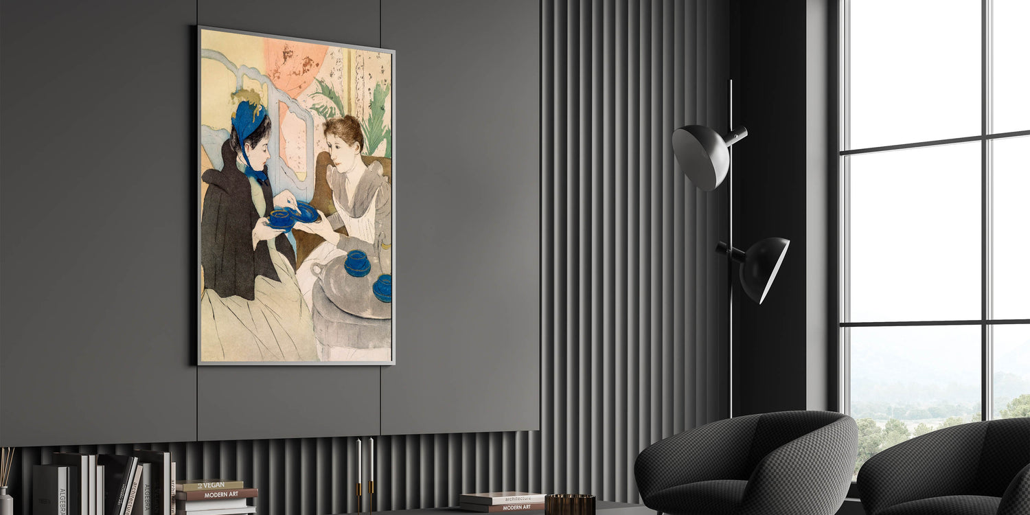 Step into the gentle charm of a refined social gathering with "Afternoon Tea Party" by Mary Cassatt. This beautifully detailed artwork captures two women engaged in a quiet moment over tea, with Cassatt’s graceful lines and soft colors conveying a sense of intimacy and warmth. Perfect for lovers of Impressionist art, this piece adds a touch of elegance and sophistication to any decor.