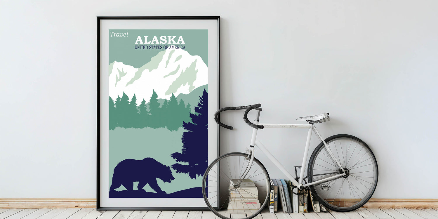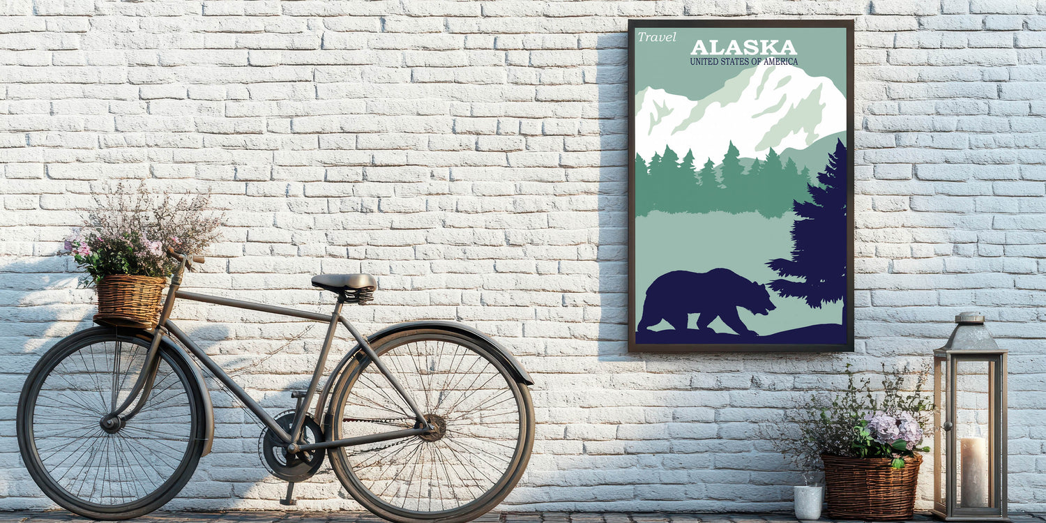 Alaska Retro Travel Poster Art | Vintage Mountain Bear Print