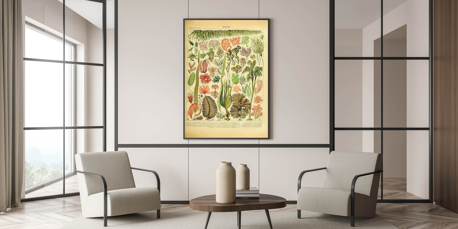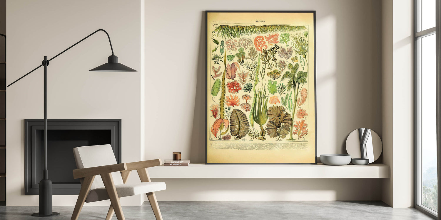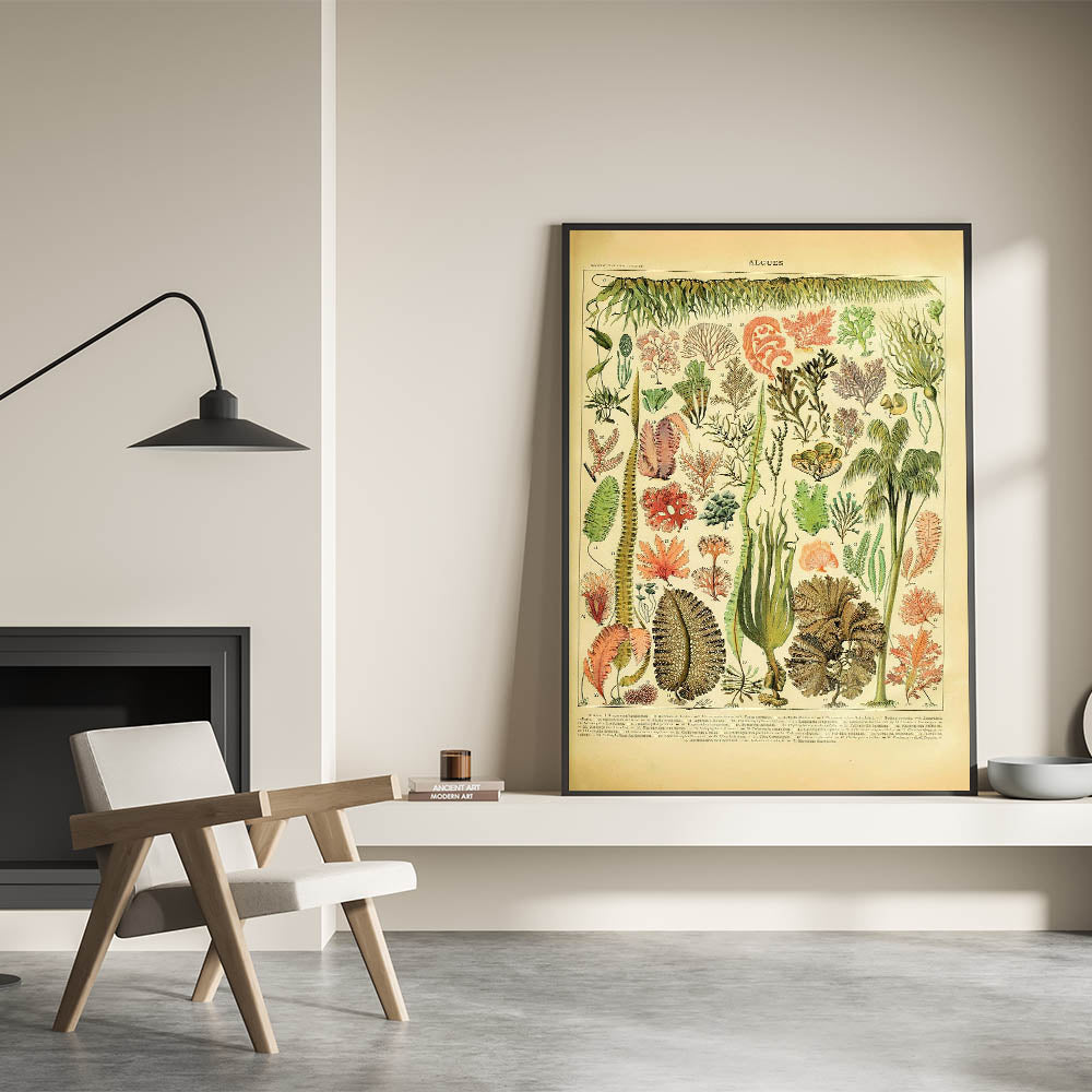 This vintage algae illustration print brings the beauty of marine life into your home. Its intricate details and natural colors will enhance any room with a touch of the ocean's wonders.