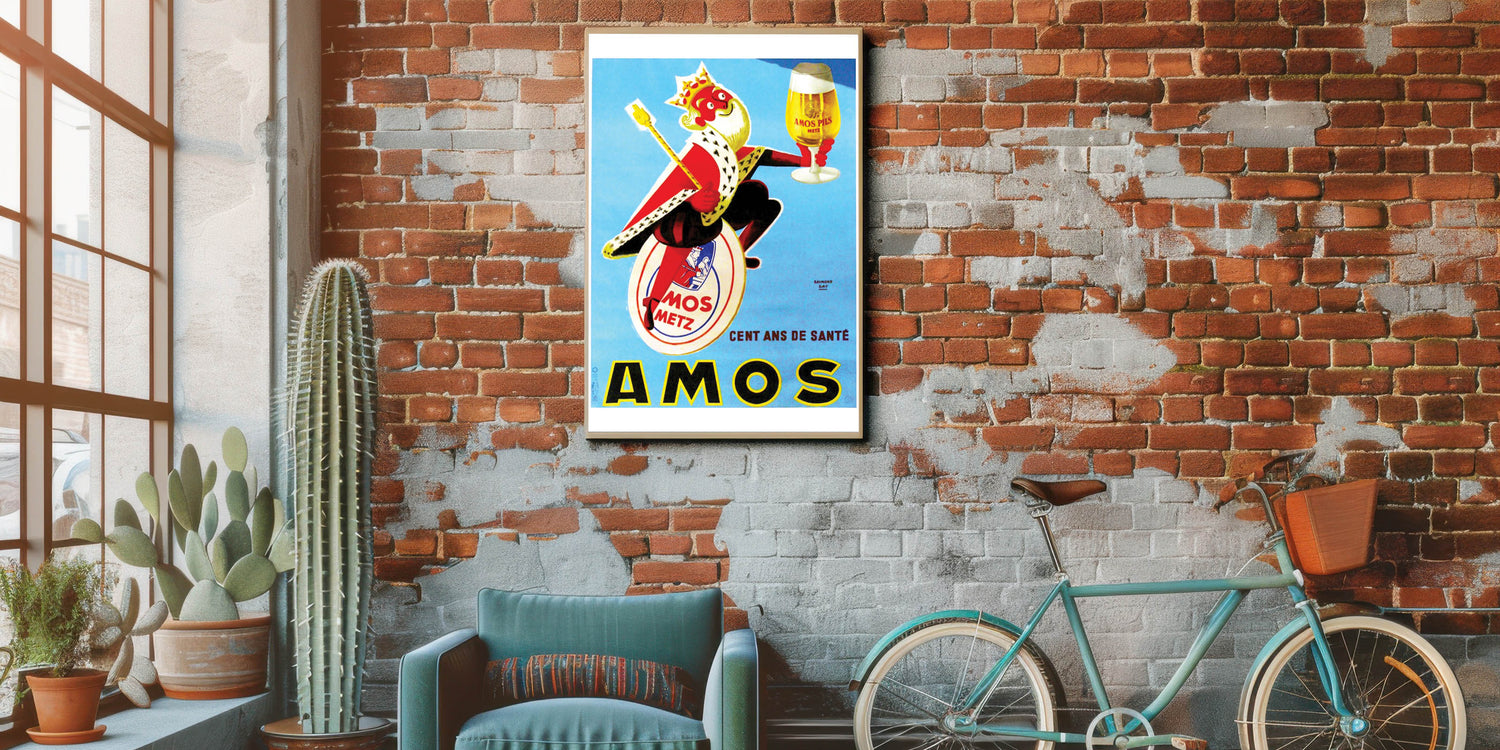 This AMOS Pils vintage beer poster is a perfect addition for your kitchen, bar, or living room. It’s a fun way to bring vintage charm into your home while showcasing a piece of beer advertising history.
