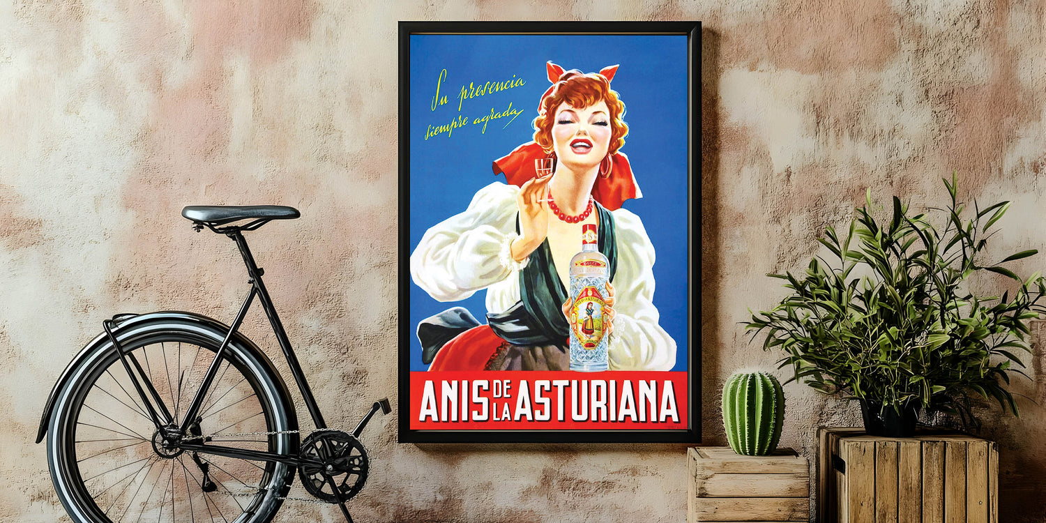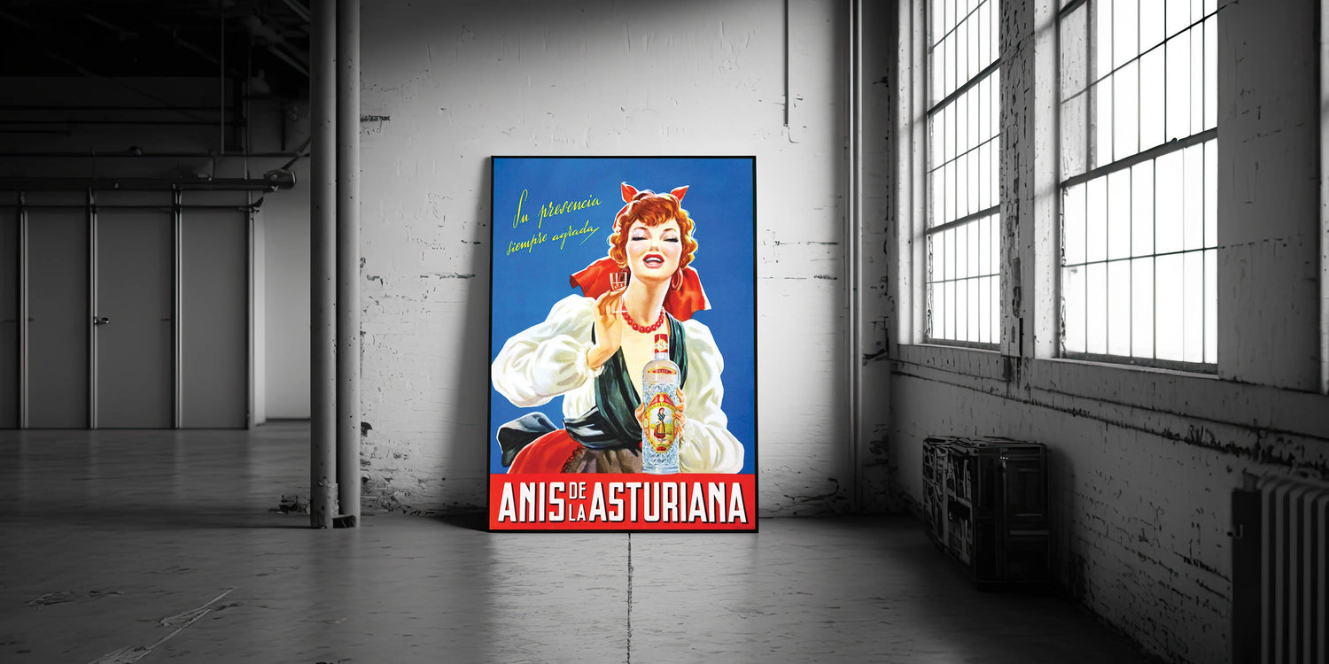 This Anís de la Asturiana poster will bring a delightful, nostalgic touch to your bar, kitchen, or living room. With its vibrant, classic design and historical significance, it’s a perfect addition to your collection of vintage-inspired wall art.