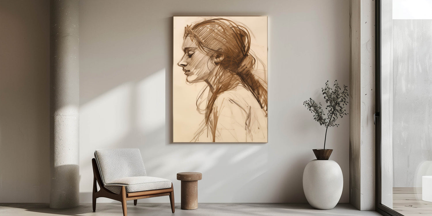 Antique Sketch Portrait Art – Retro Charcoal Canvas & Prints