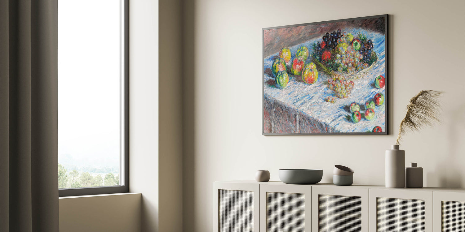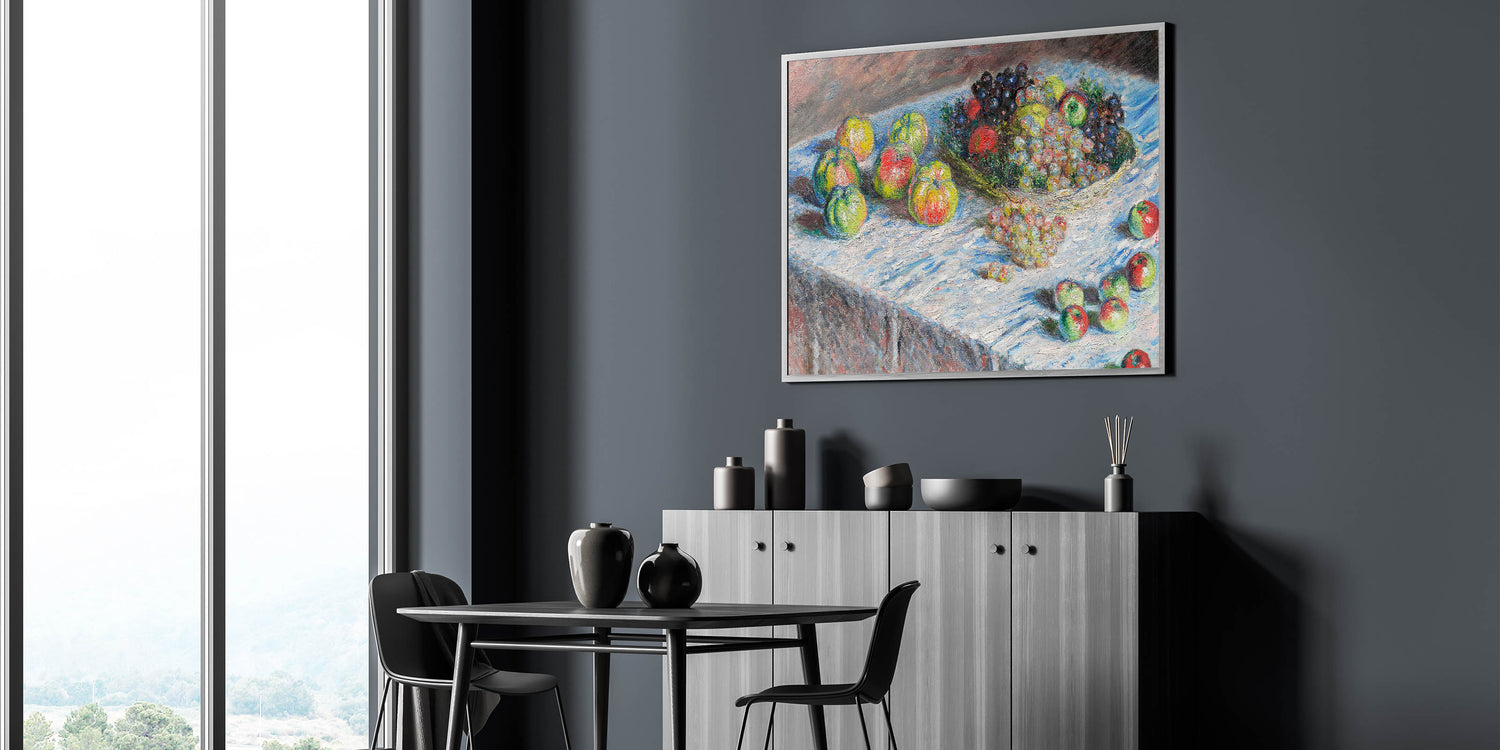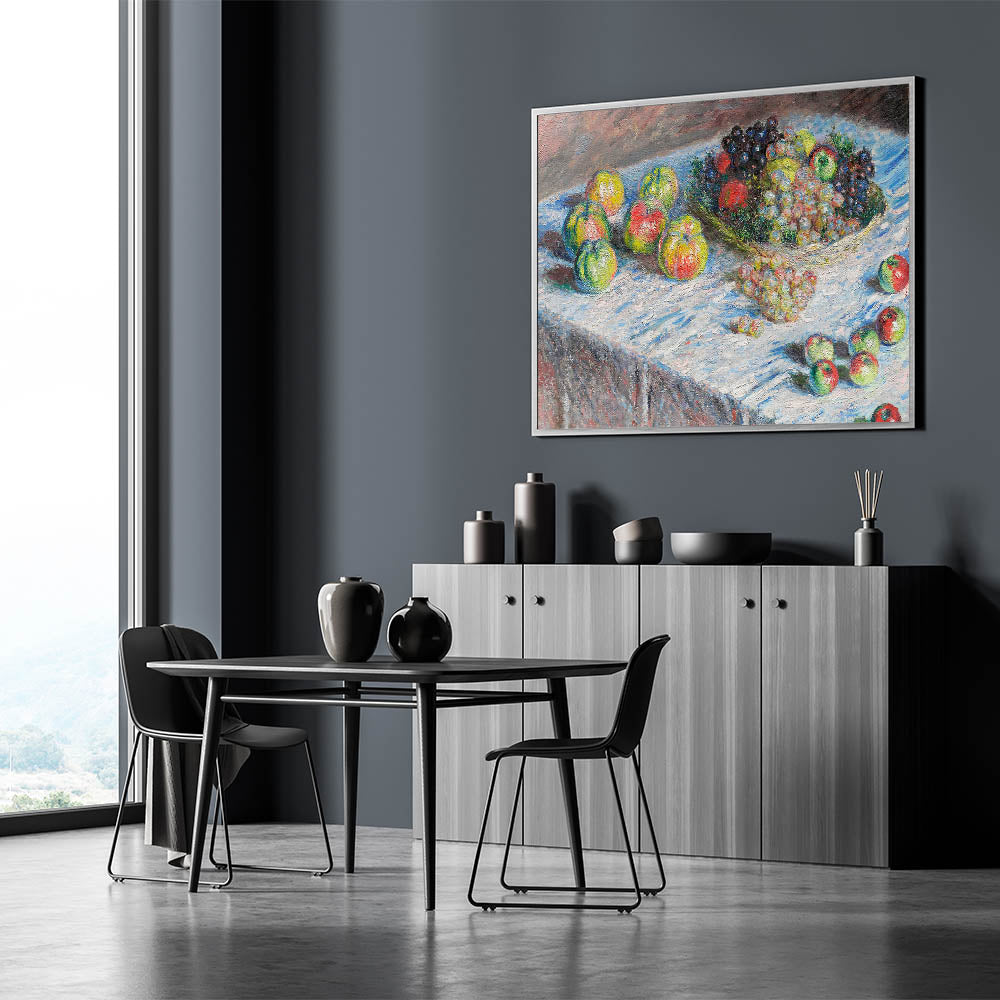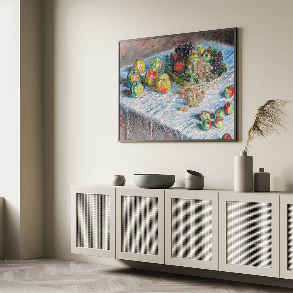 This colorful still life by Monet adds a lively and artistic touch to any room, making it perfect for dining spaces, kitchens, or areas that could use a splash of elegance.