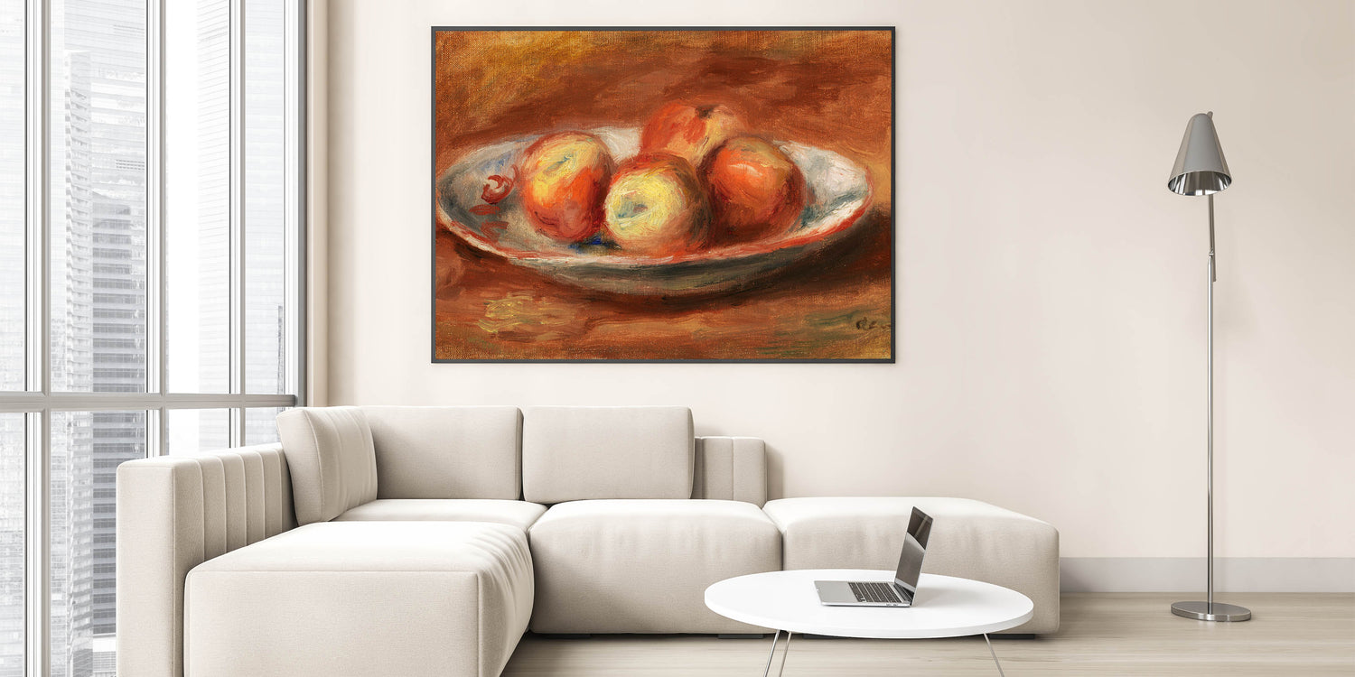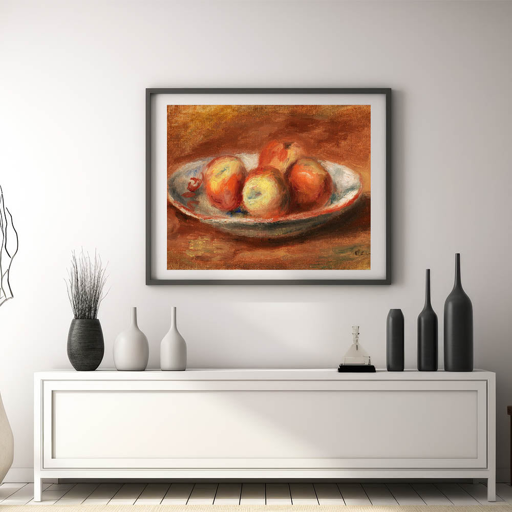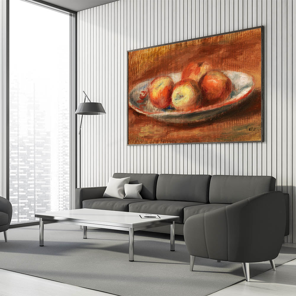 Add a touch of classic beauty to your decor with "Apples (Pommes)" by Pierre-Auguste Renoir. This vibrant still life captures the warm, inviting tones of apples arranged on a plate, painted with Renoir’s signature brushstrokes that bring a sense of freshness and vitality. Ideal for those who appreciate the elegance of Impressionist art, this piece brings warmth and color to any room.