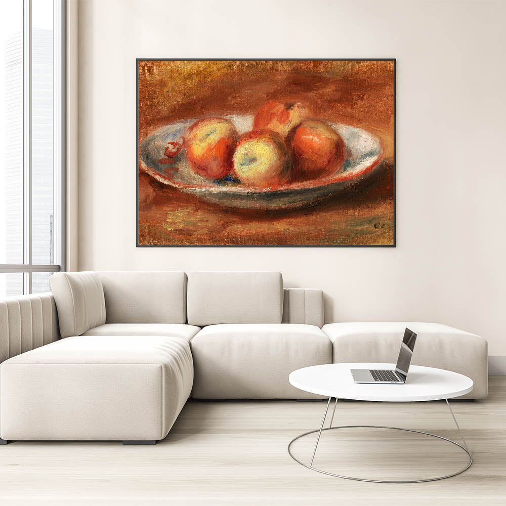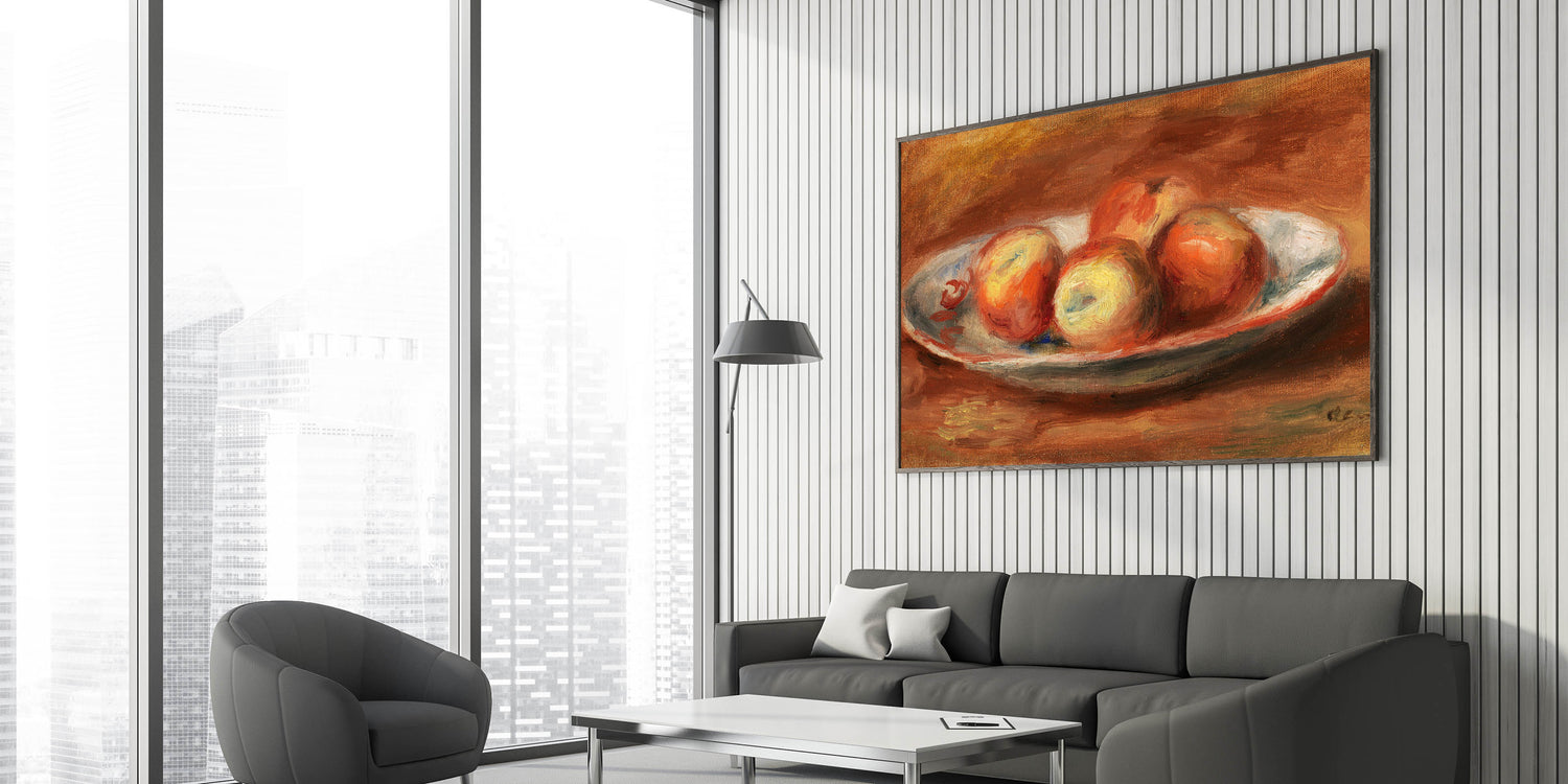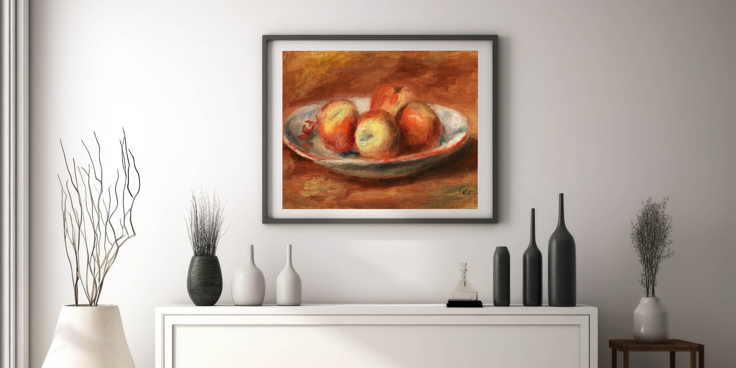 Add a touch of classic beauty to your decor with "Apples (Pommes)" by Pierre-Auguste Renoir. This vibrant still life captures the warm, inviting tones of apples arranged on a plate, painted with Renoir’s signature brushstrokes that bring a sense of freshness and vitality. Ideal for those who appreciate the elegance of Impressionist art, this piece brings warmth and color to any room.