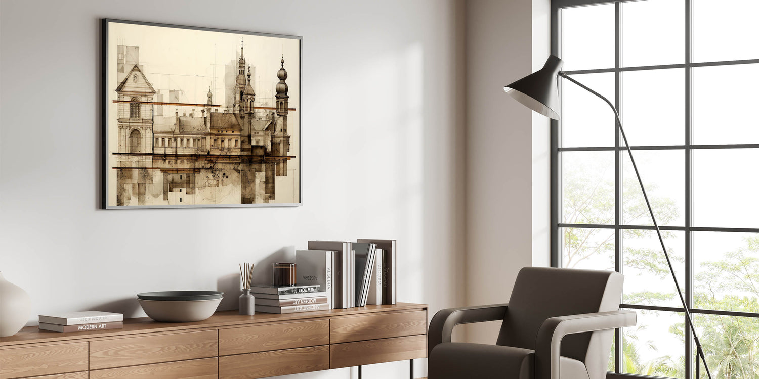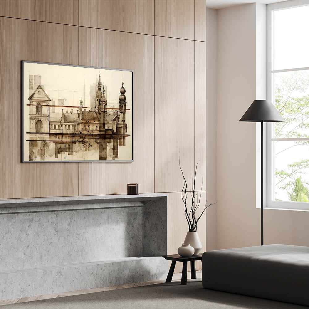 This vintage architectural illustration is the perfect way to celebrate craftsmanship and design, making it a beautiful focal point in any room.