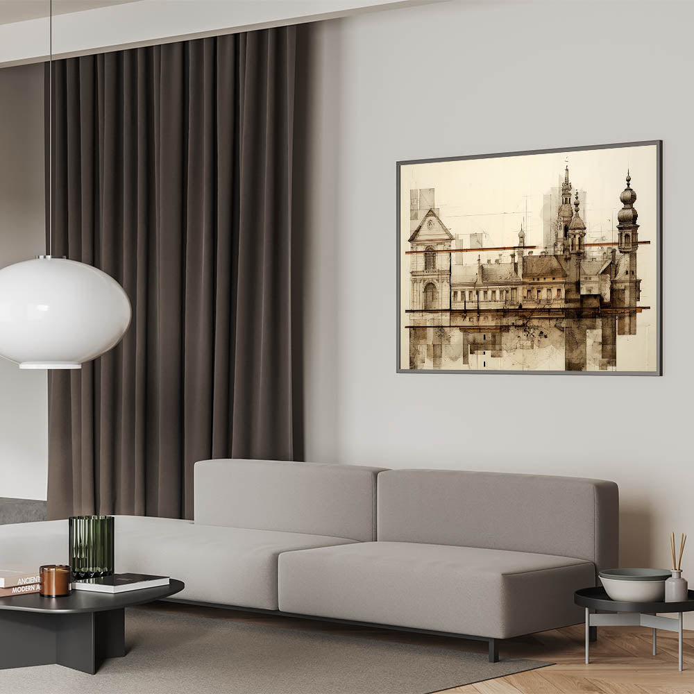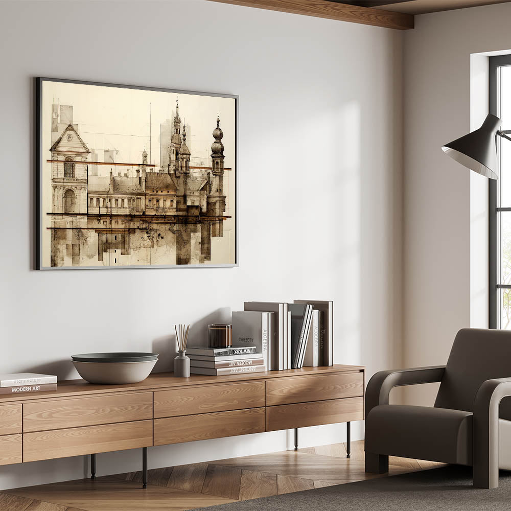 Add an elegant touch to your space with this stunning architectural wall art featuring a detailed illustration of a historic church. This vintage architecture print showcases a masterful blend of traditional architectural styles and intricate details, offering a glimpse into the beauty of historic buildings. Perfect for any space, this architectural decor piece adds a unique, sophisticated flair to your home or office. Whether you're drawn to the beauty of historic buildings or appreciate the artistry of detailed architectural drawings, this piece is a must-have.