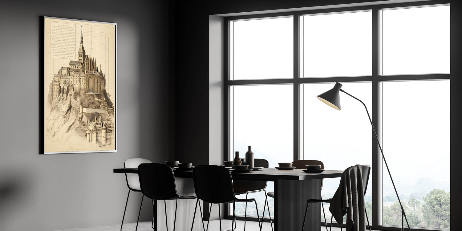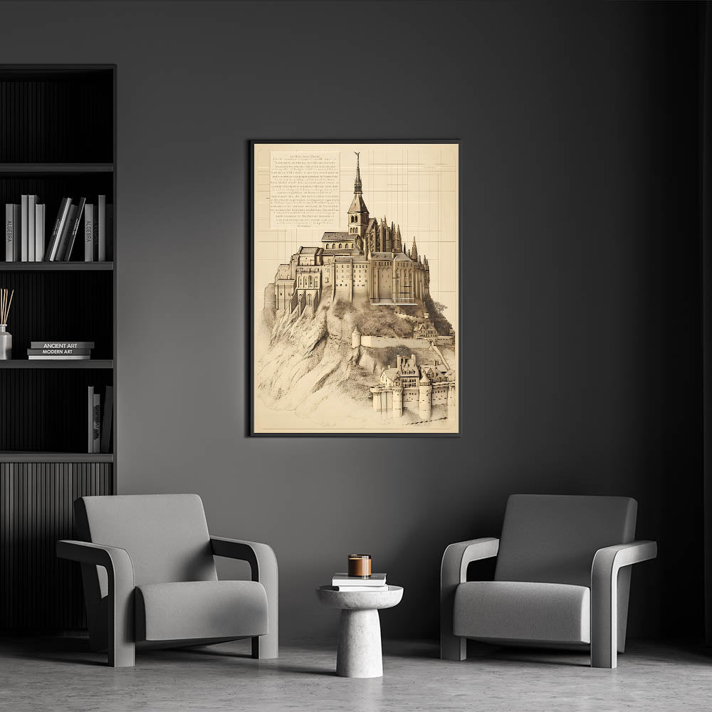 - High-quality print of Mont Saint-Michel with detailed architectural design