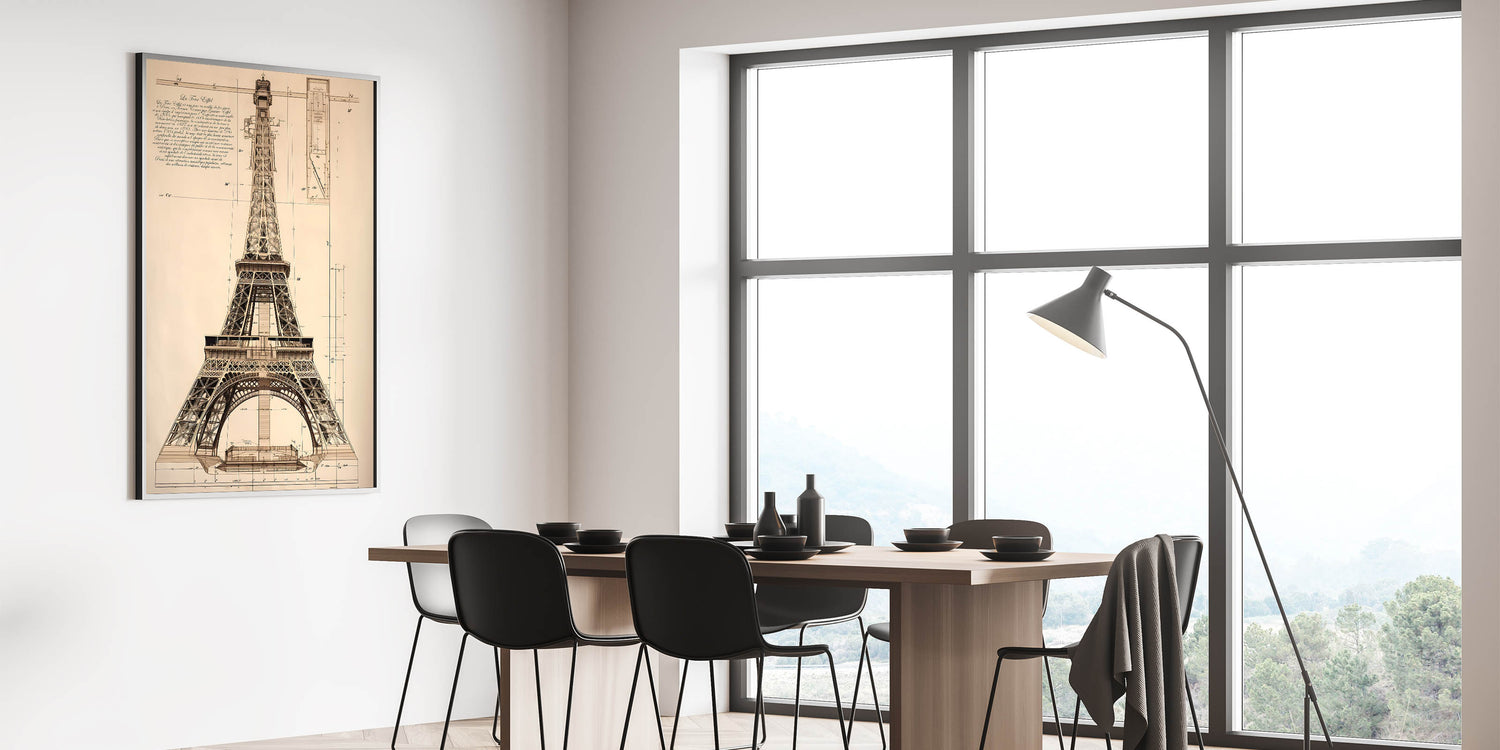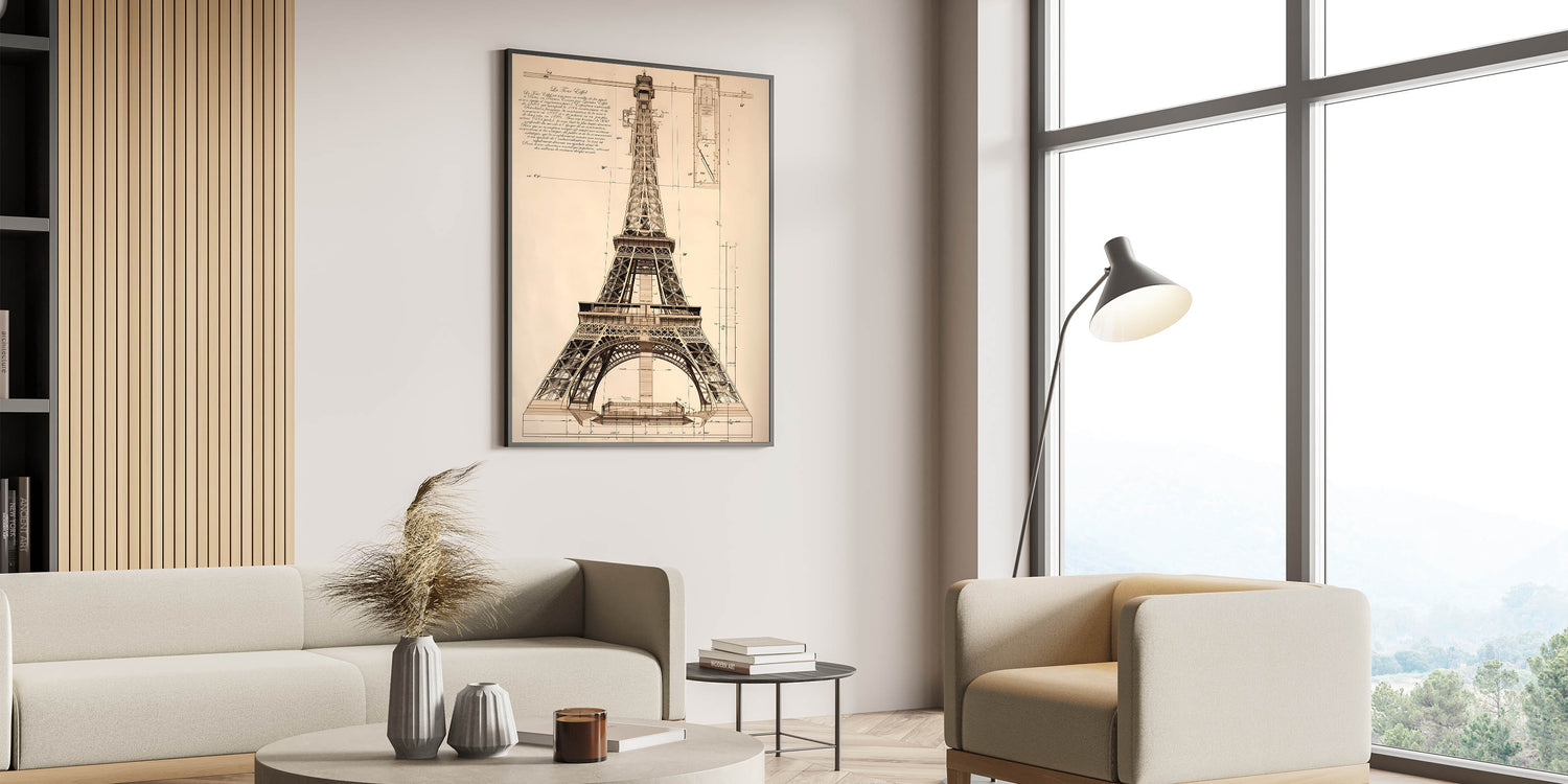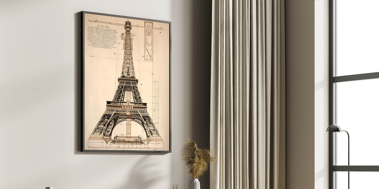 Elevate your space with our Vintage Eiffel Tower Architectural Wall Art, a stunning illustration that captures the intricate details of this iconic historic structure. This artwork is part of our Vintage Architecture Collection, designed for those who appreciate detailed architectural drawings and classic design styles. The sepia-toned blueprint effect adds a touch of elegance, making it a perfect fit for living rooms, offices, and study spaces.