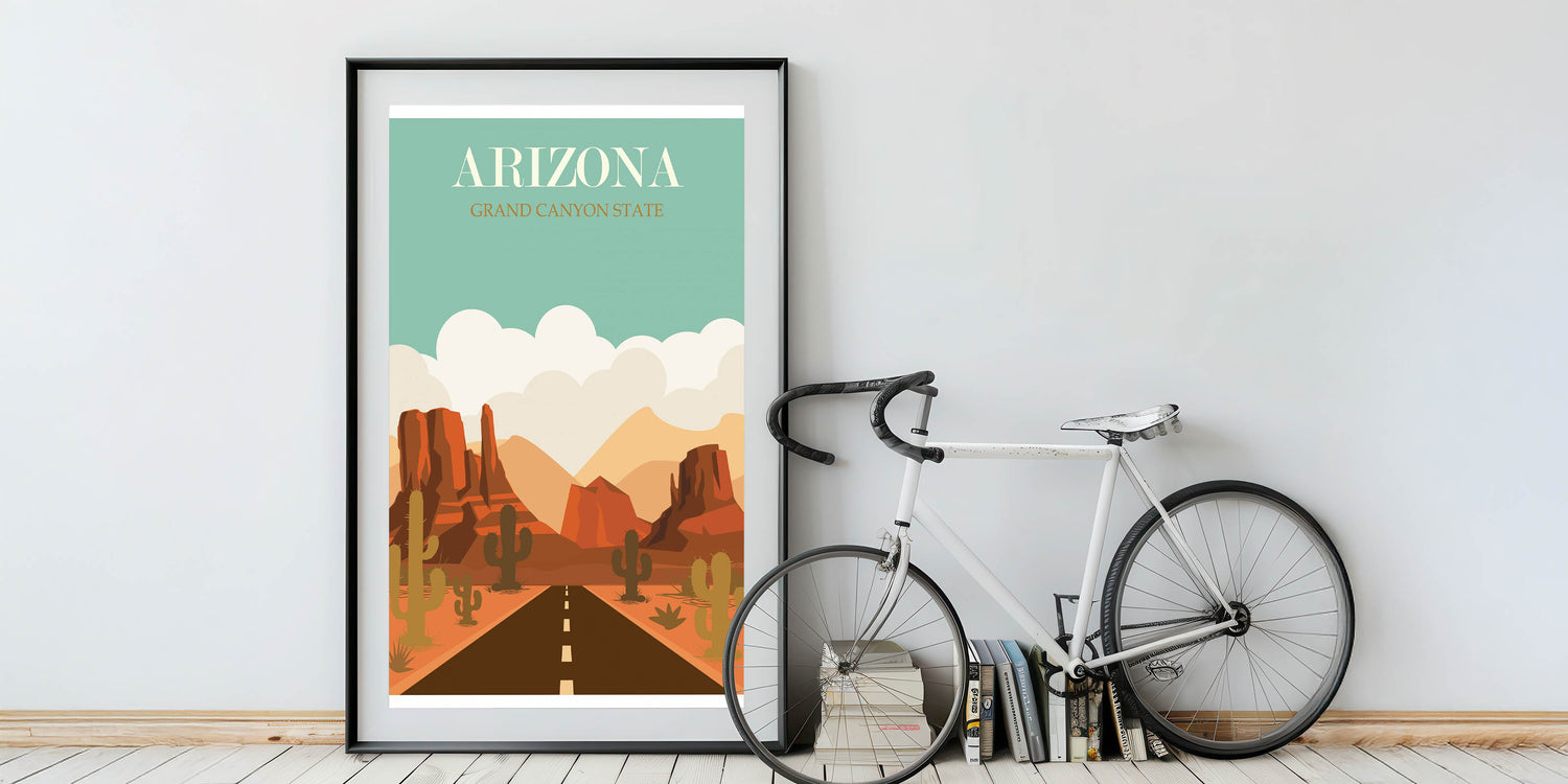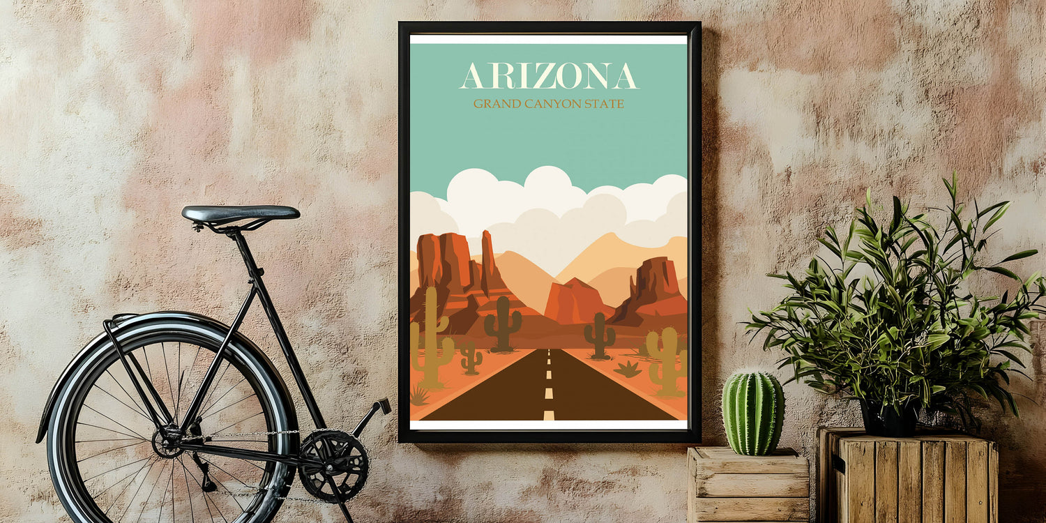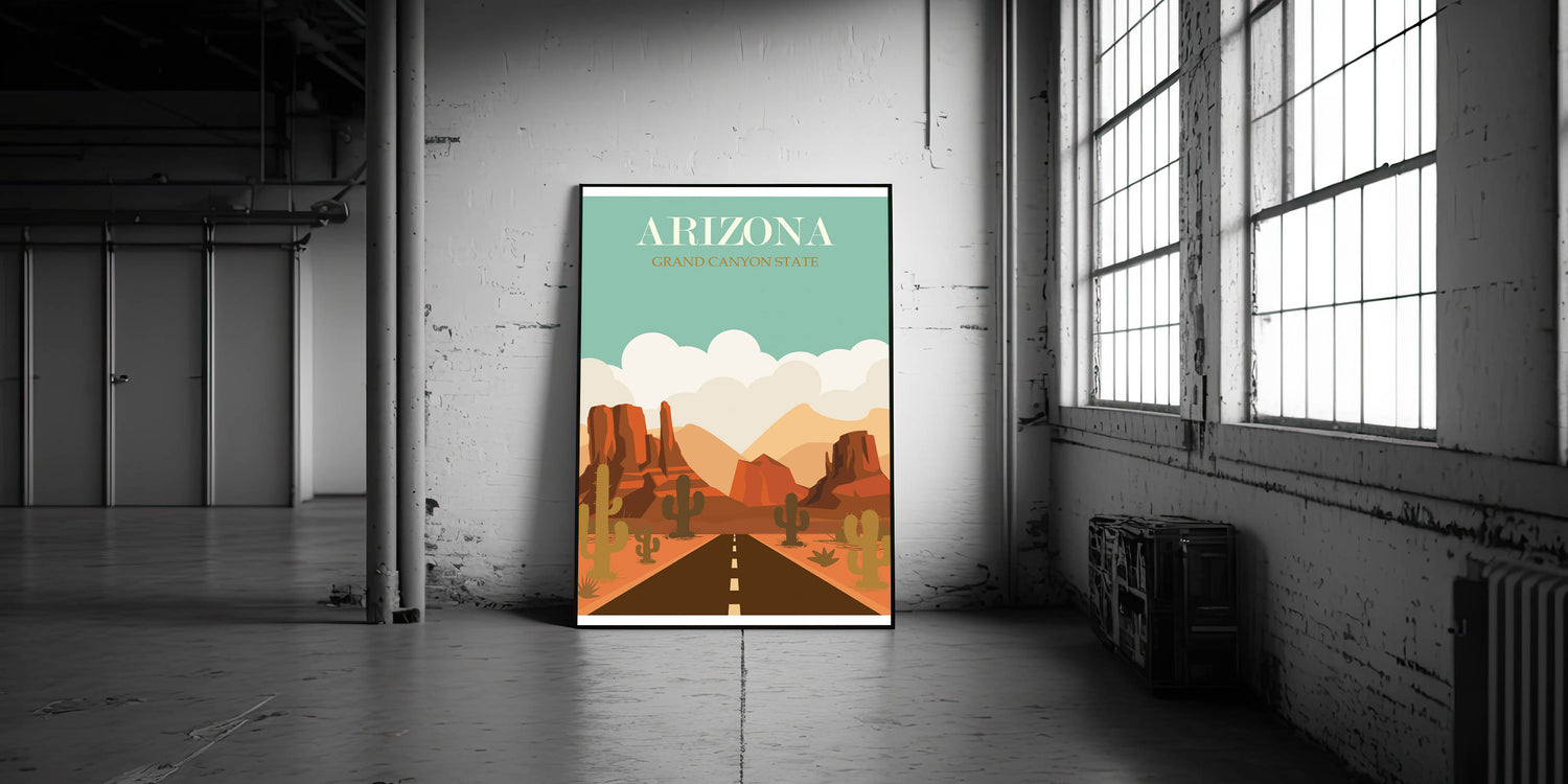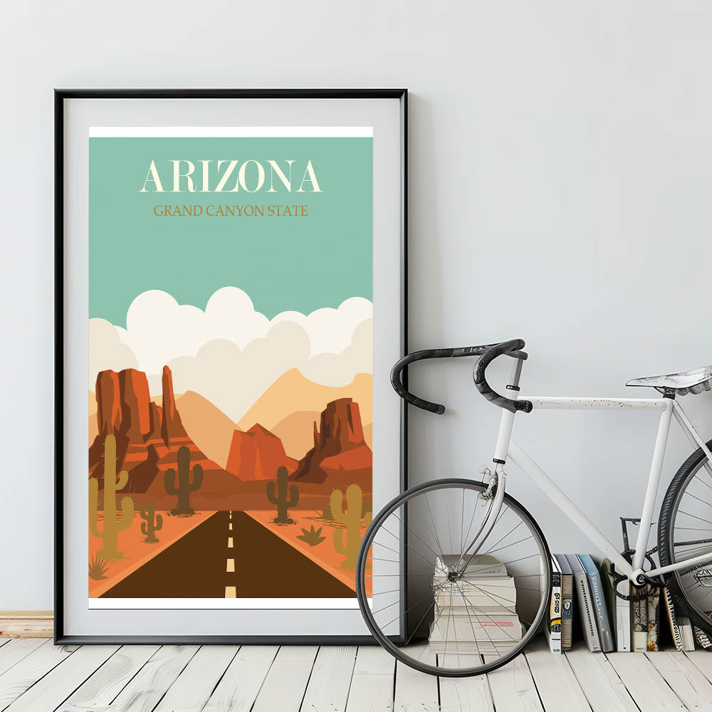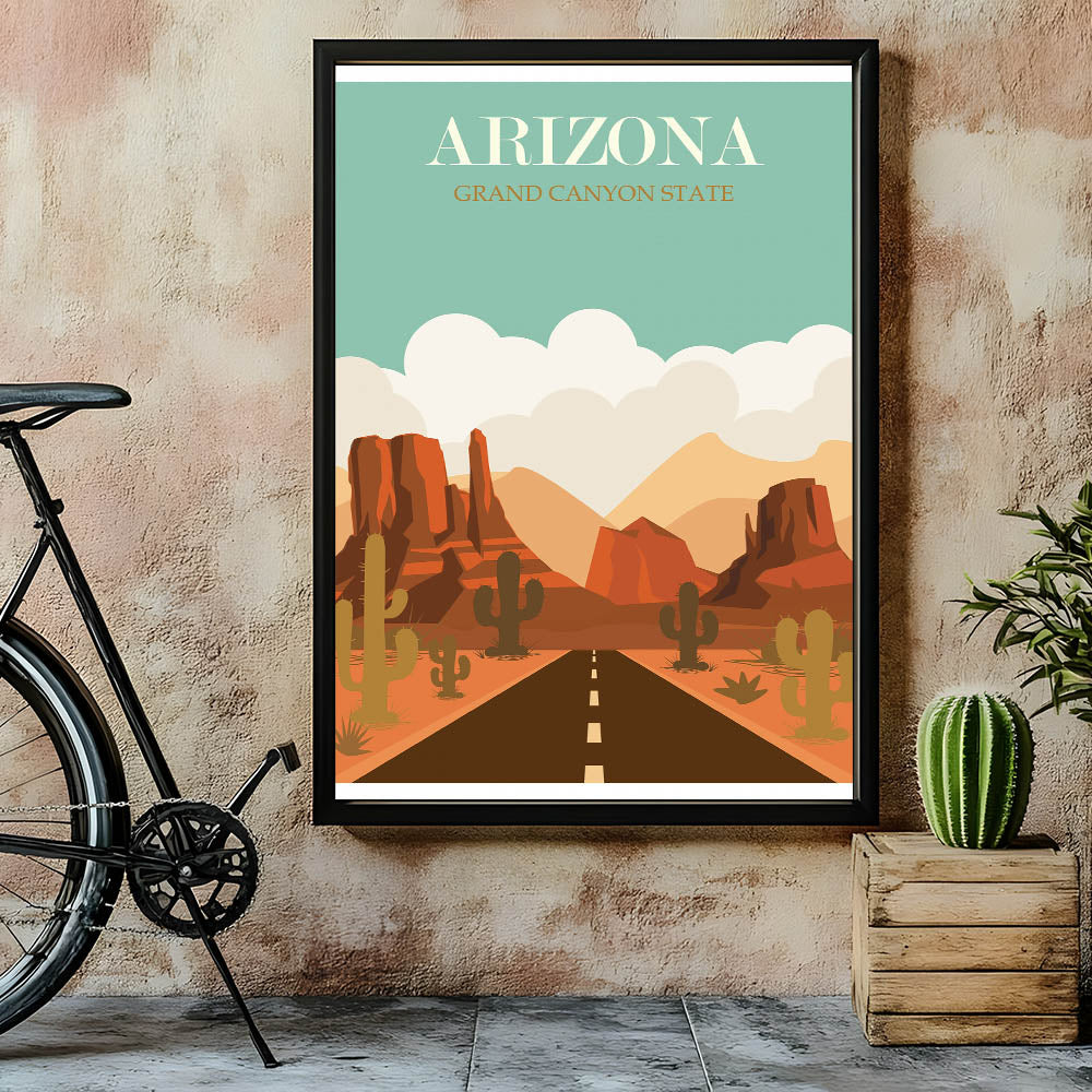Bring the allure of the Arizona desert into your home with this vintage travel poster. Whether you're a nature lover or an avid traveler, this piece will add a striking touch of adventure to any room.