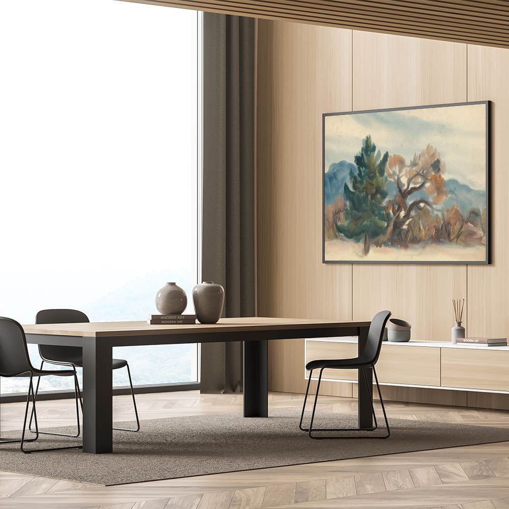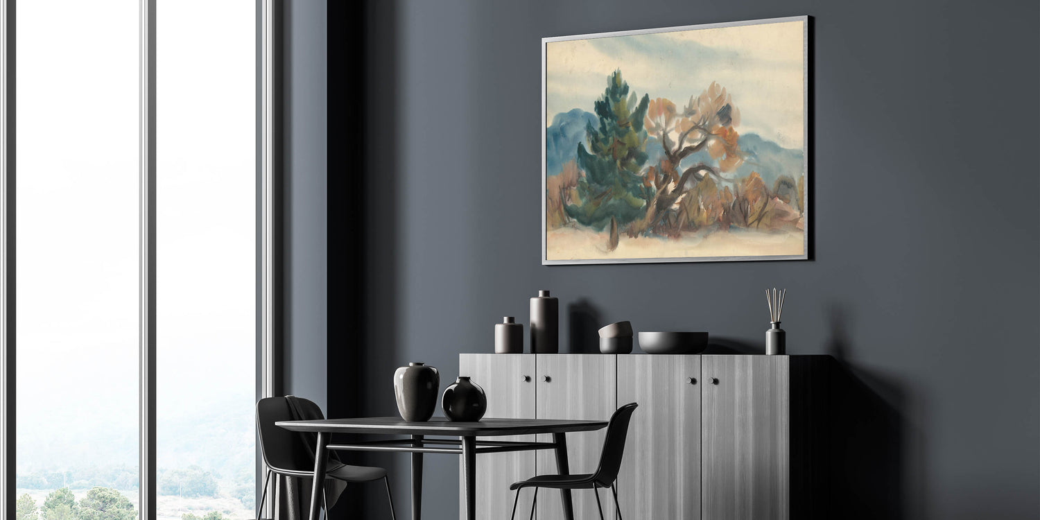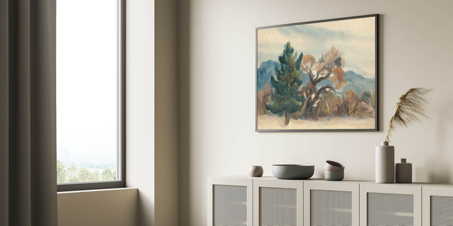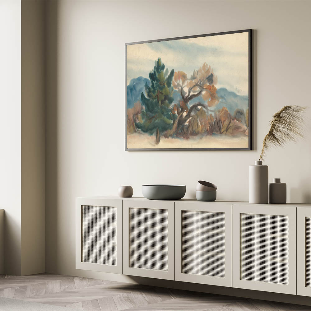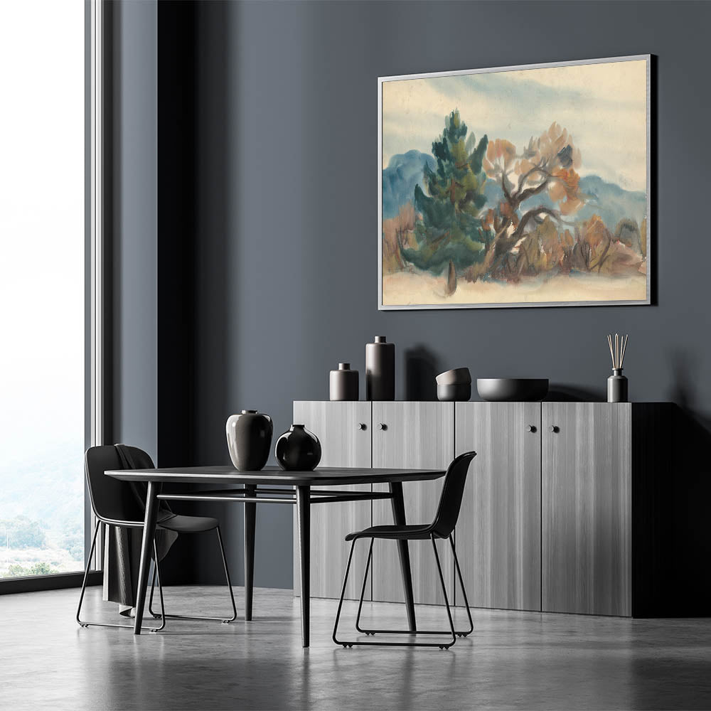 Embrace the serene beauty of nature with this modern wall art piece, capturing an autumn forest scene in soft, watercolor tones. Ideal for contemporary spaces, this unique art print blends modern design elements with a calming natural theme, making it a perfect addition to stylish home decor.