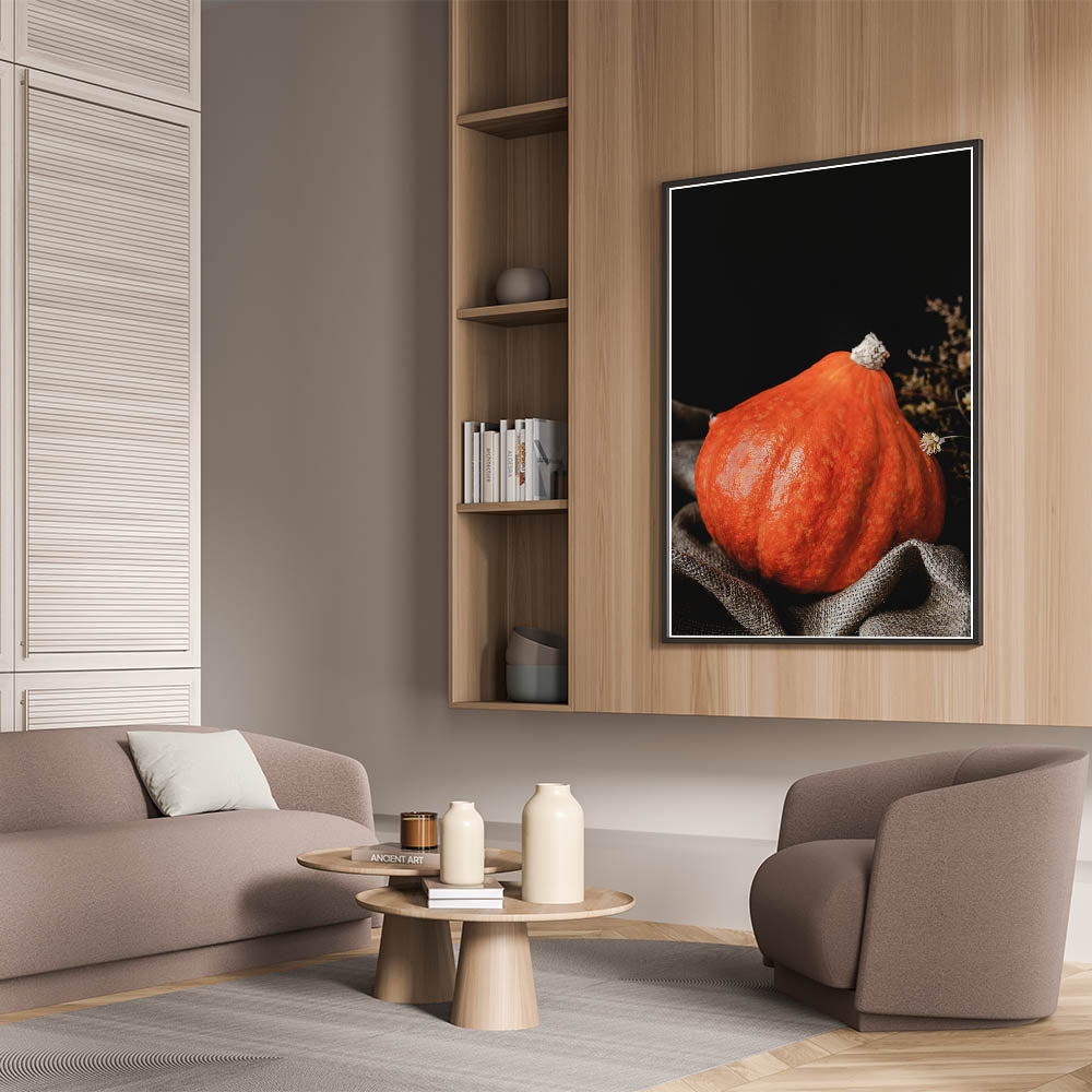- Vibrant Detailing: The artwork highlights the deep orange hues and textured surface of the pumpkin.