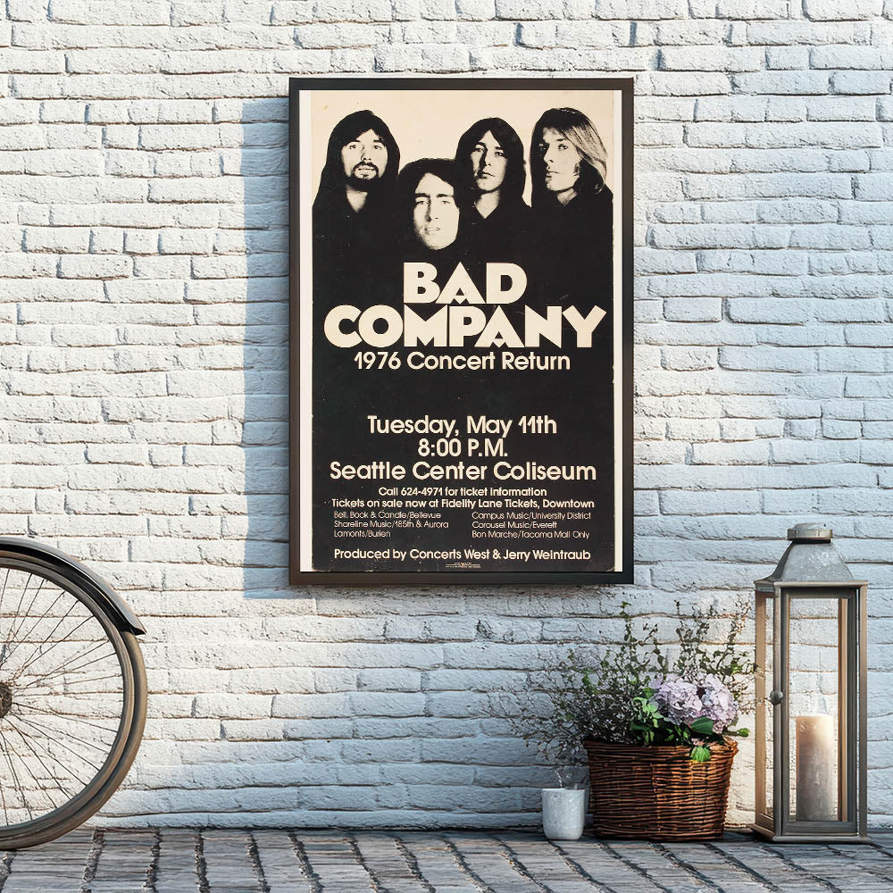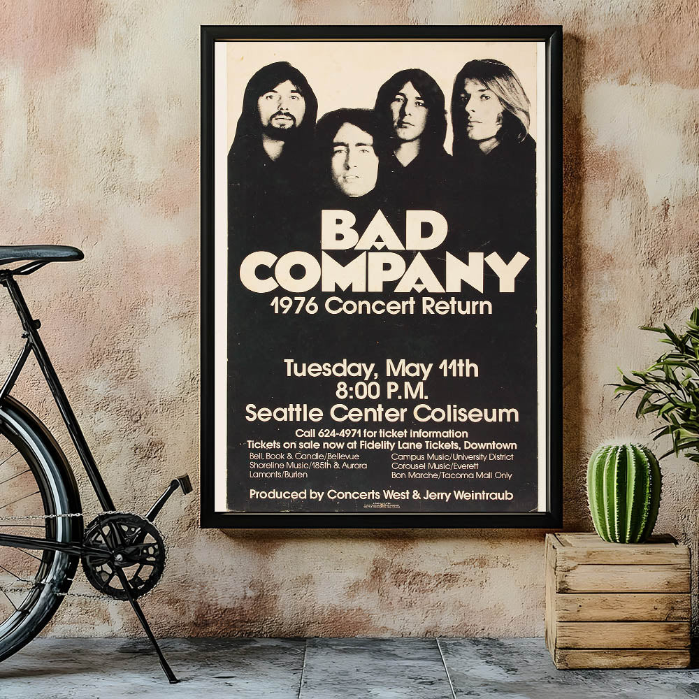 Bad Company 1976 Concert Poster – Retro Black & White Wall Art