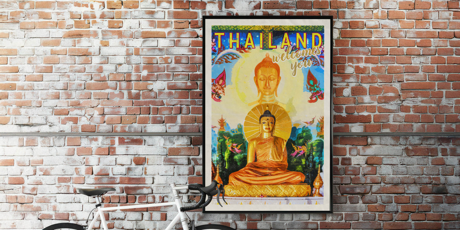 Bangkok Thailand Retro Travel Poster | Buddha Temple Welcome Art