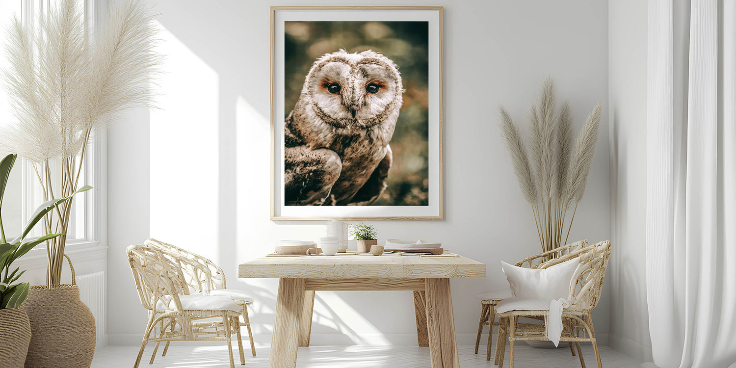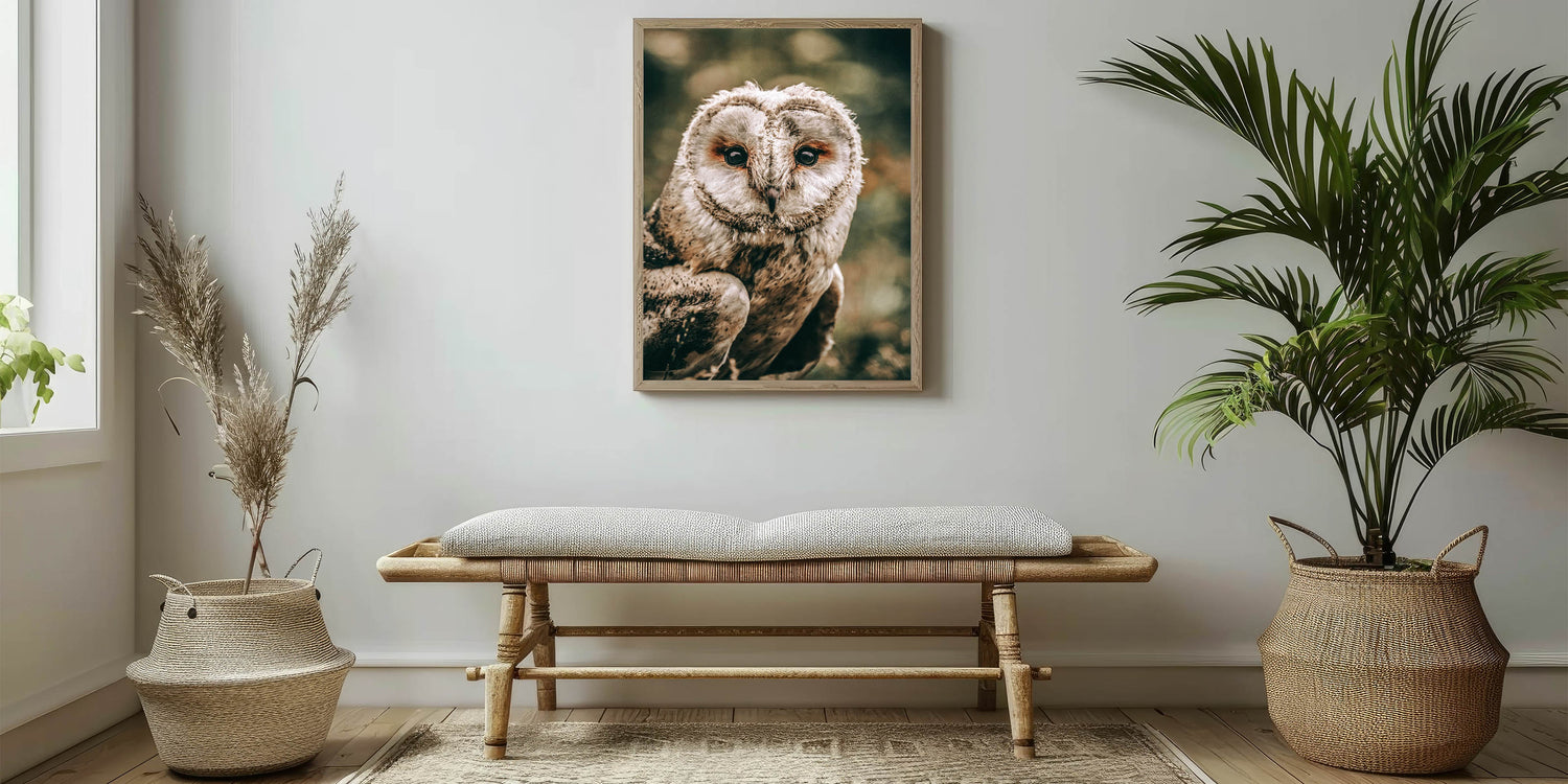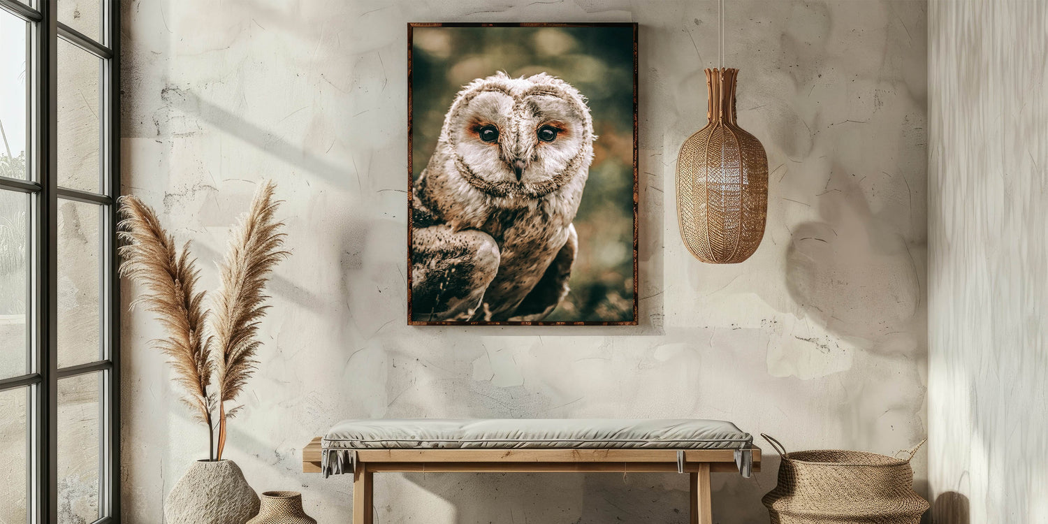 Bring the quiet elegance of nature into your home with this captivating barn owl wall art. The owl’s piercing gaze and soft, detailed feathers make this artwork an ideal focal point for any room with a farmhouse or rustic decor style. The earthy tones and lifelike portrayal of the owl create a calm and serene atmosphere, perfect for nature lovers who appreciate the beauty of wildlife.