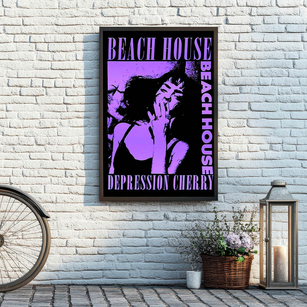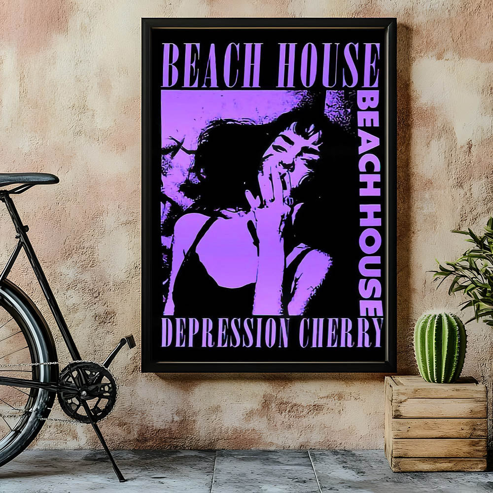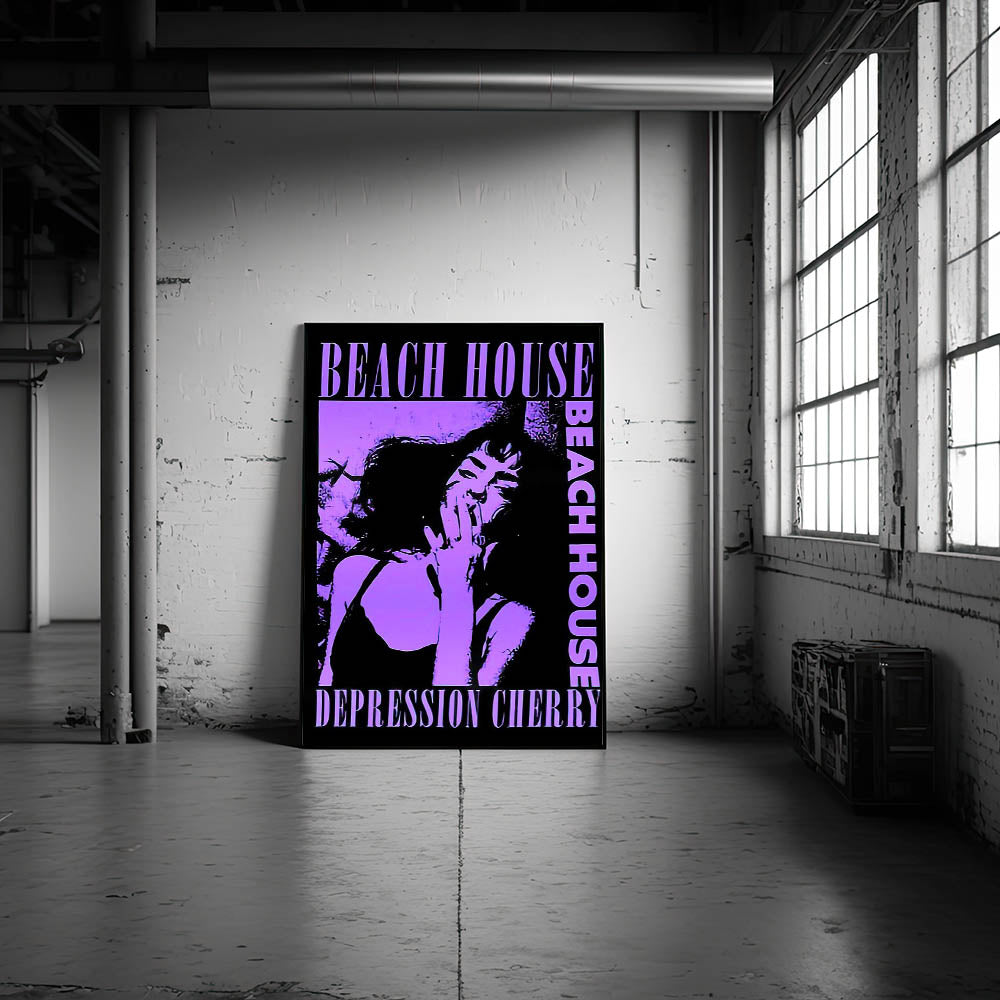 Capture the moody, dreamy atmosphere of Beach House’s Depression Cherry album with this striking Retro Poster Art. Featuring bold purple tones and dramatic imagery, this vintage print showcases the unique style of the band’s iconic album. The hypnotic design, centered around a captivating portrait, is perfect for fans of indie music and lovers of nostalgic art prints. The combination of modern aesthetics with retro flair makes this piece a standout addition to any room.