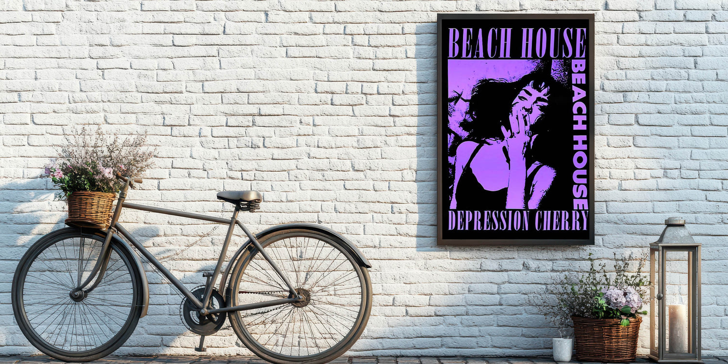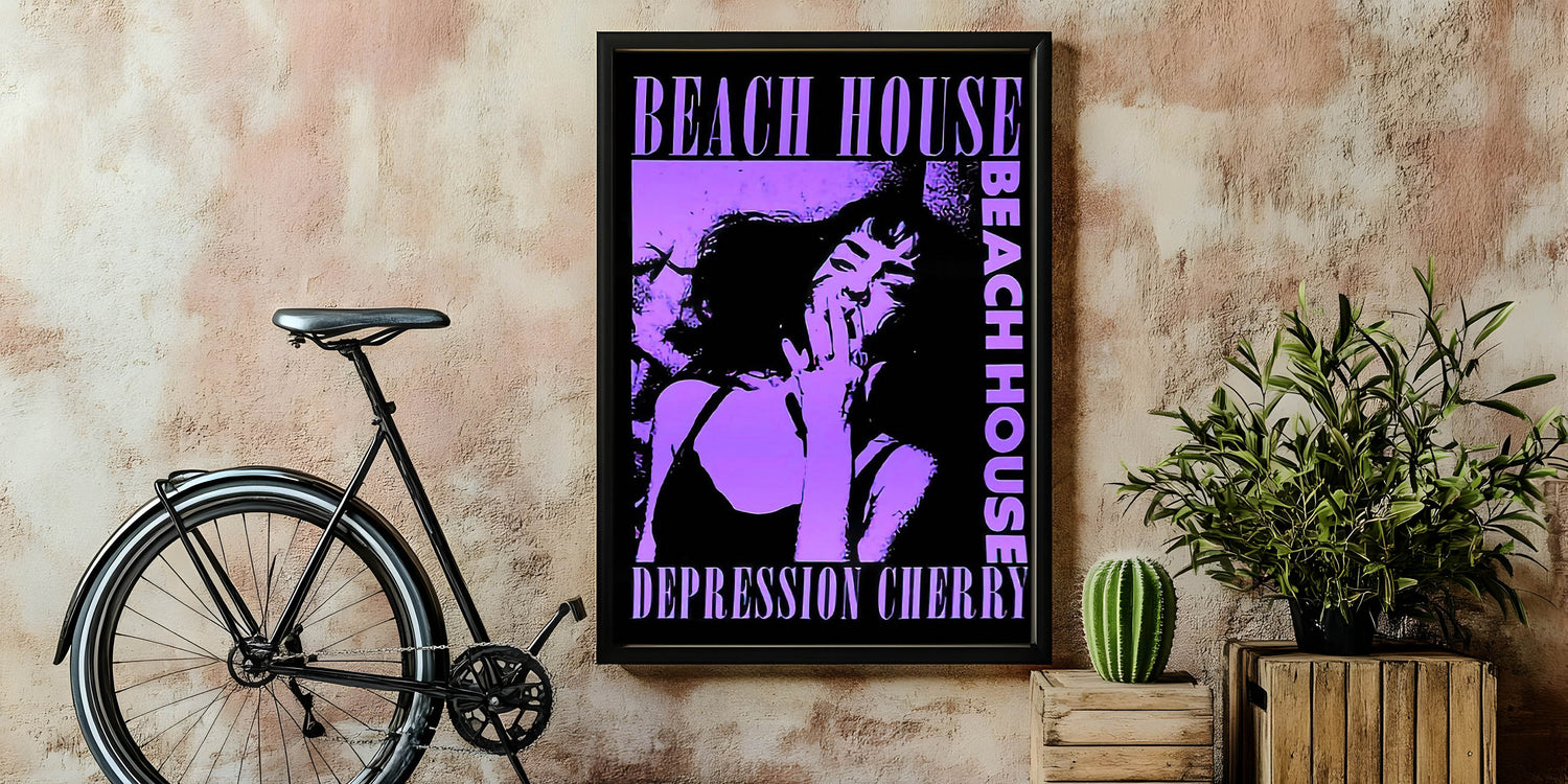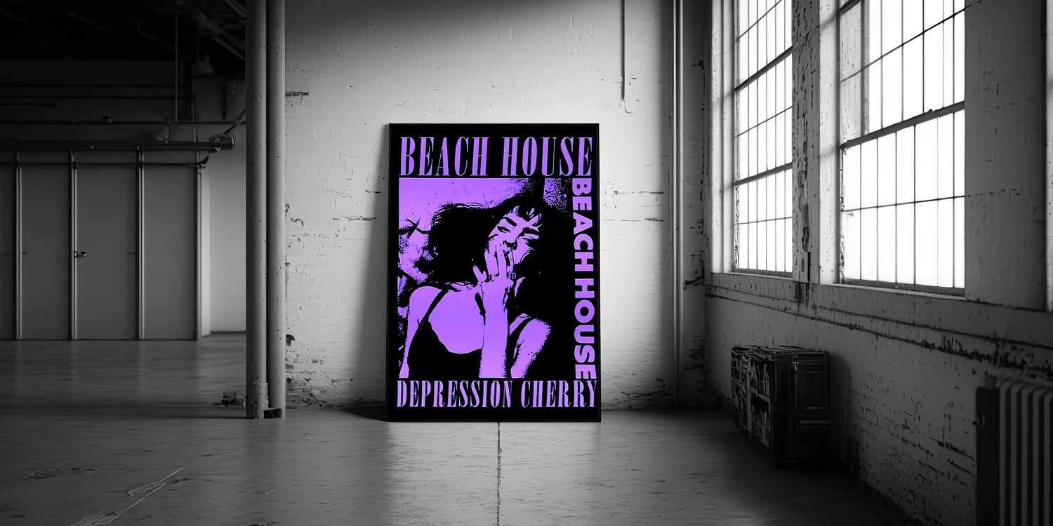 Capture the moody, dreamy atmosphere of Beach House’s Depression Cherry album with this striking Retro Poster Art. Featuring bold purple tones and dramatic imagery, this vintage print showcases the unique style of the band’s iconic album. The hypnotic design, centered around a captivating portrait, is perfect for fans of indie music and lovers of nostalgic art prints. The combination of modern aesthetics with retro flair makes this piece a standout addition to any room.