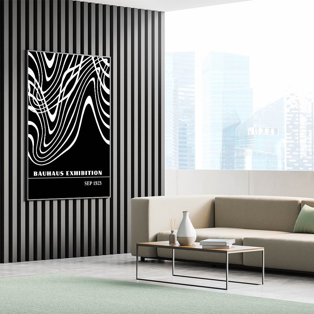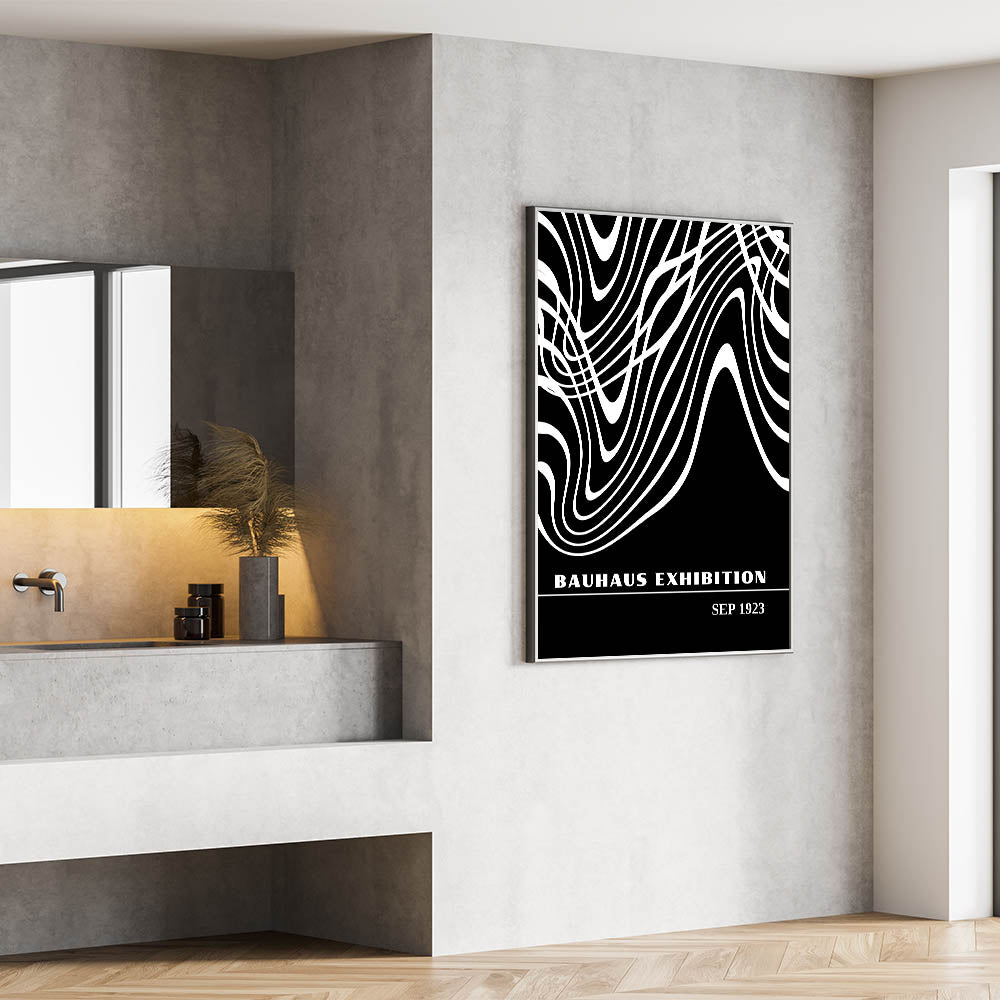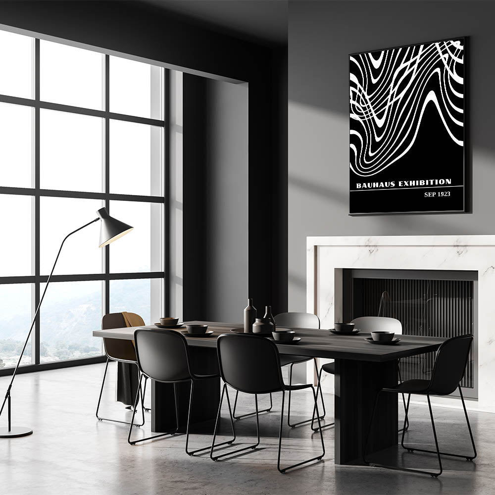 Bring dynamic energy into your space with this Bauhaus-inspired abstract wall art. Featuring flowing white lines against a black background, this design creates an eye-catching, fluid movement that transforms any room into a contemporary art gallery. Ideal for modern, eclectic, or boho-chic interiors, this piece of art perfectly combines Bauhaus geometric principles with a free-flowing, organic design.