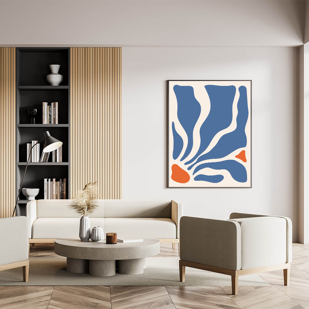 The dynamic contrast between the deep blue and vibrant orange creates an eye-catching piece of art that is both modern and expressive. Whether you’re decorating a cozy bedroom or creating a focal point in your living room, this boho wall art brings a unique and sophisticated touch to your space. Available in various formats, this artistic canvas complements a wide range of decor styles.