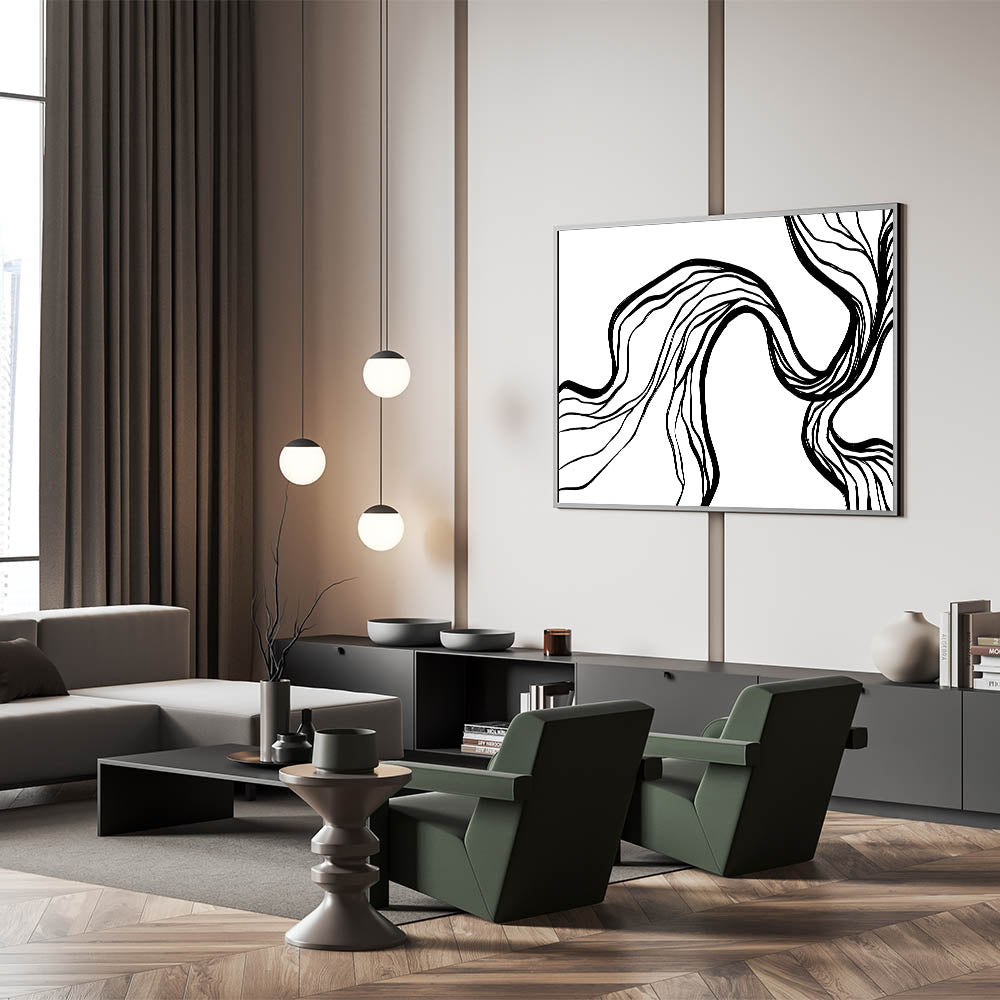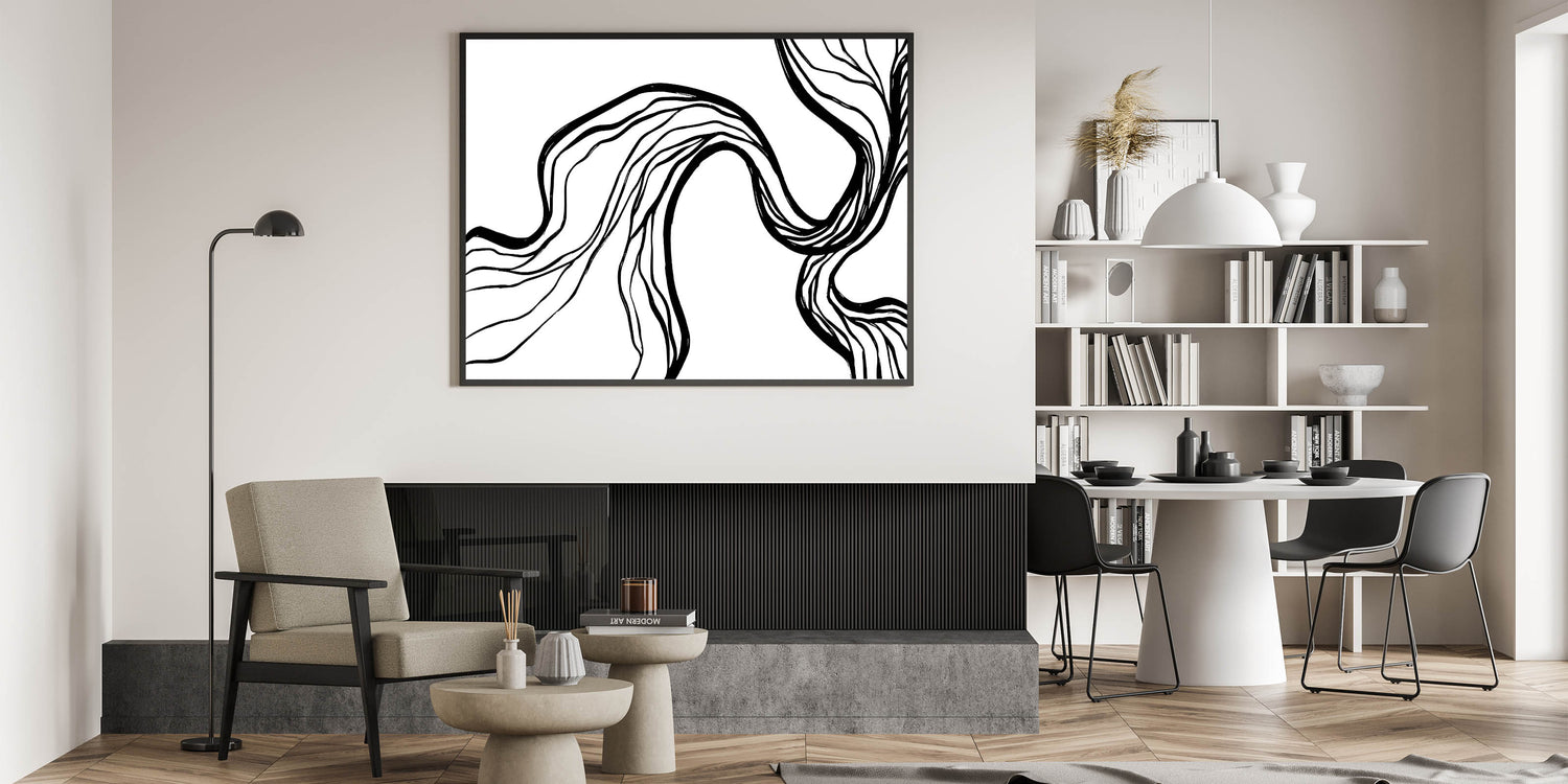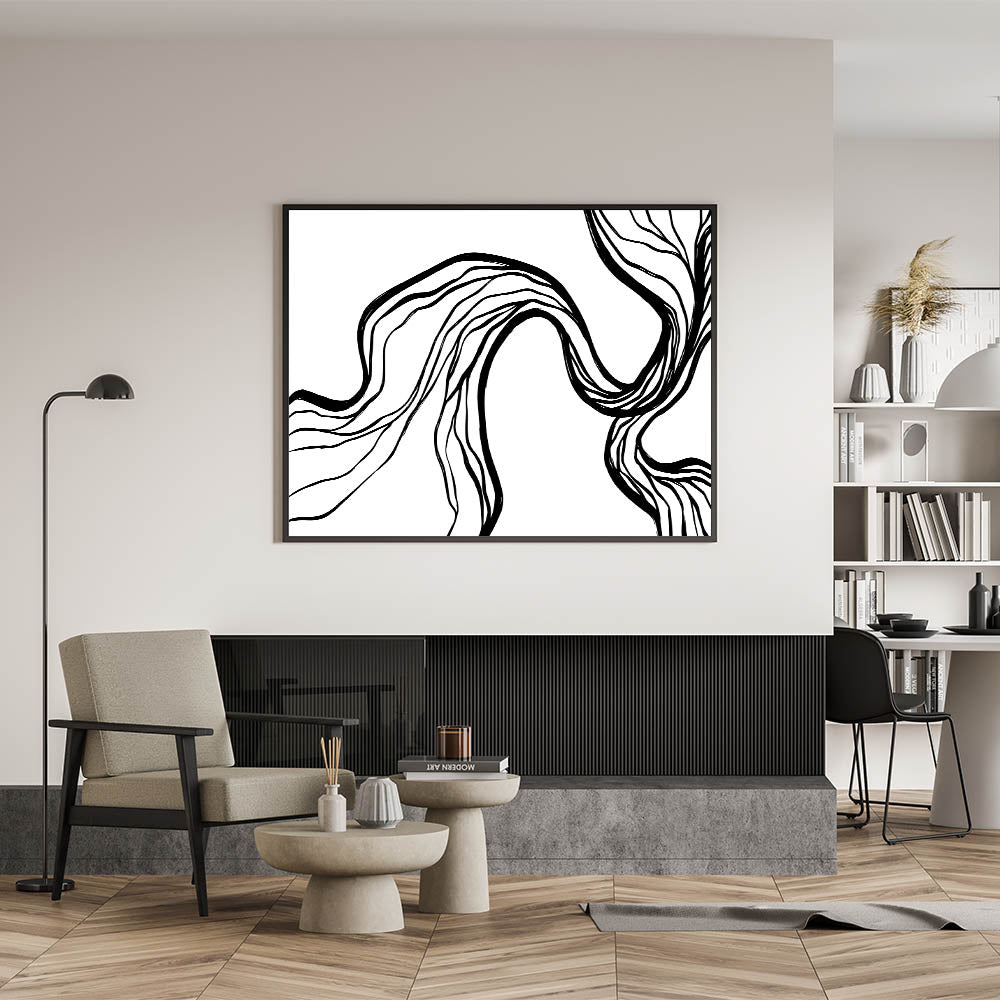Introduce a captivating touch to your modern space with this unique Bohemian artwork. Featuring flowing, abstract black lines on a pristine white background, this piece exudes an elegant, minimalist charm. Perfect for those who appreciate eclectic designs, this vibrant bohemian print enhances any room with its artistic simplicity. Whether you’re styling your living room or creating a chic gallery wall, this handcrafted bohemian-style canvas print offers versatile appeal for a variety of interior styles.