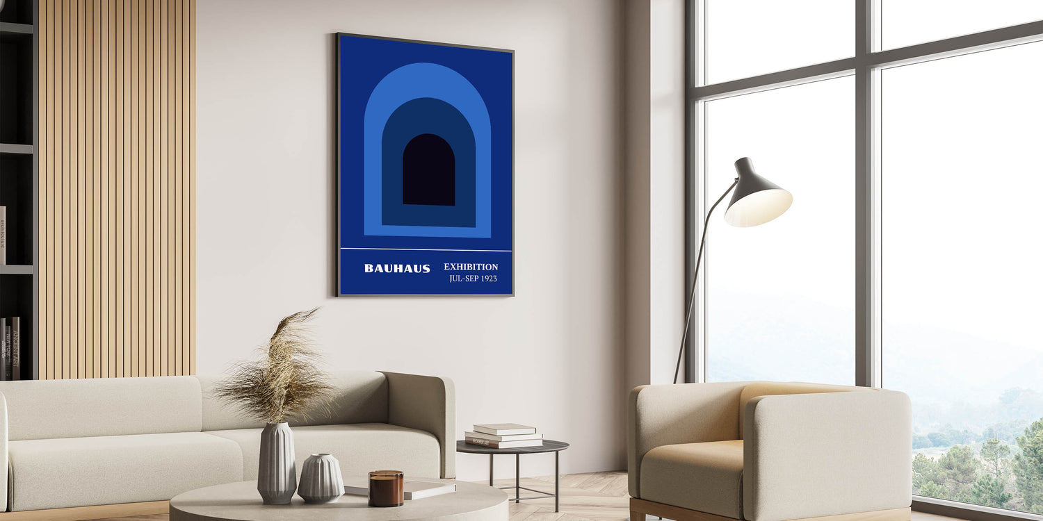 Bohemian Wall Art | Bauhaus Exhibition 1923 Boho Canvas | Blue Arch Decor