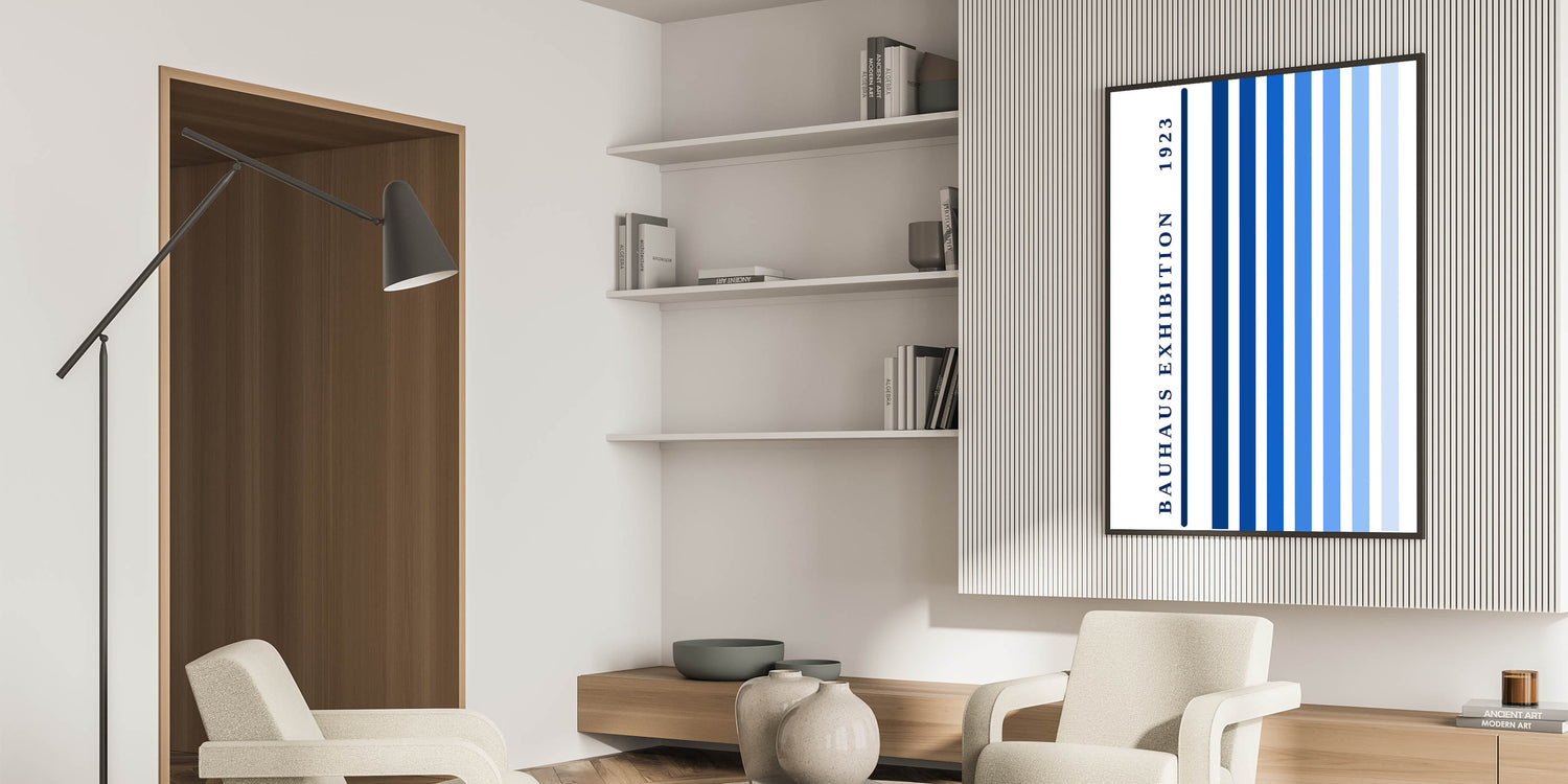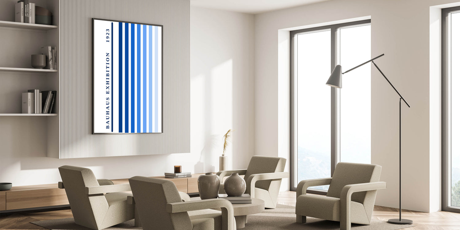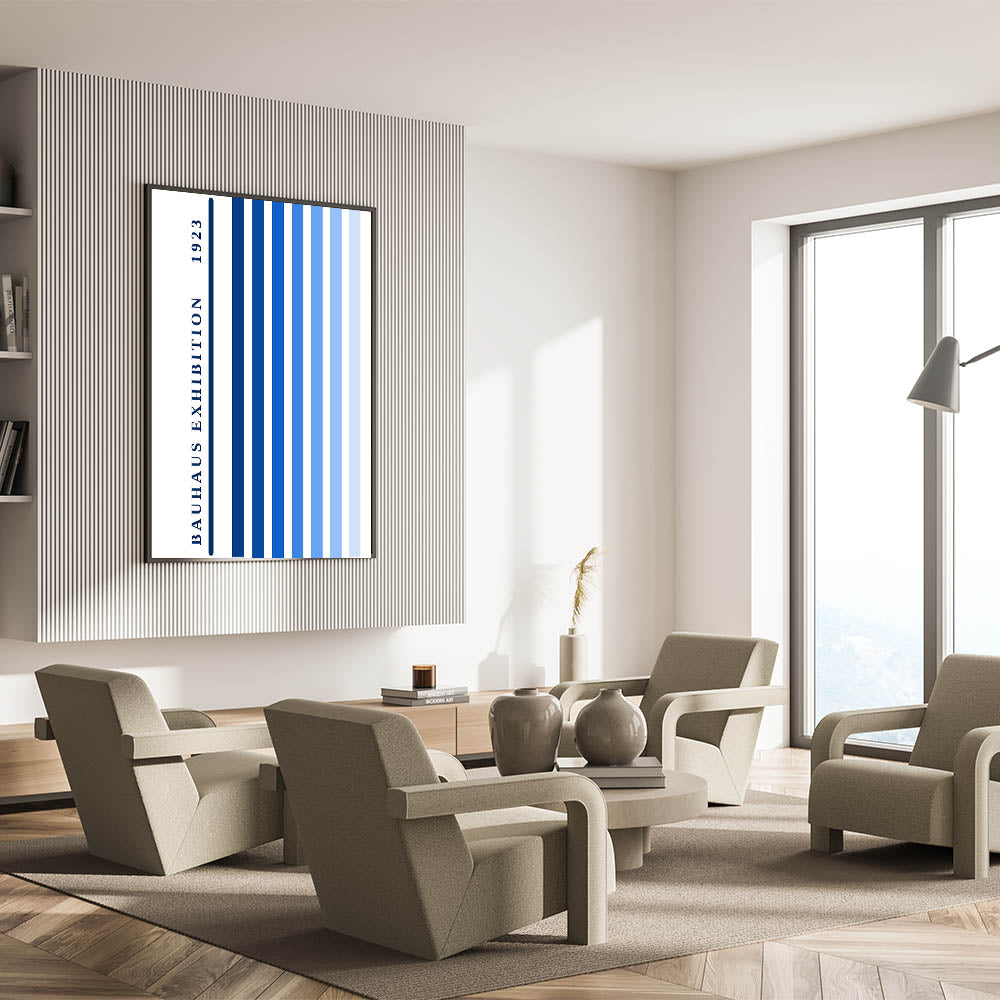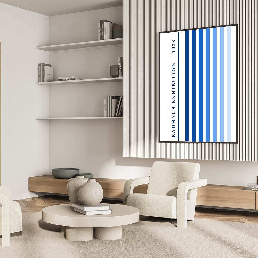 Bohemian Wall Art | Bauhaus Exhibition 1923 Boho Canvas | Blue Stripes