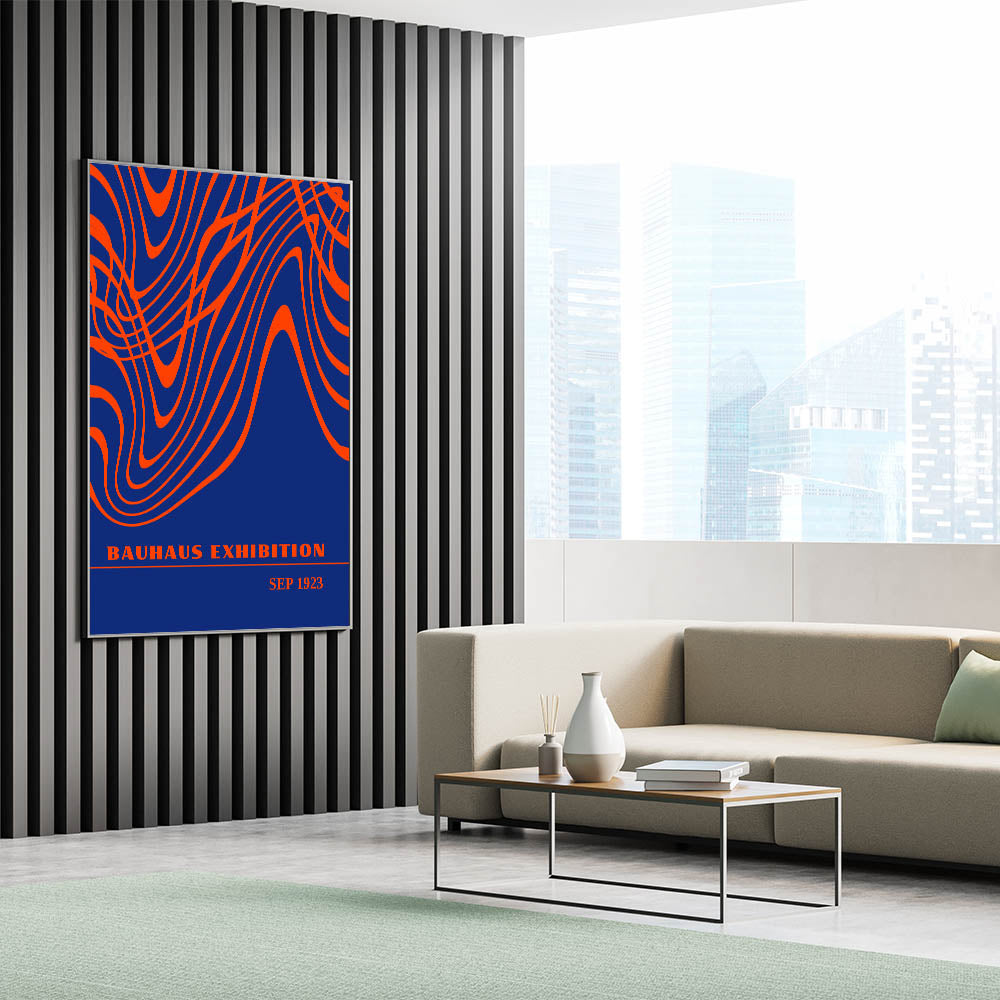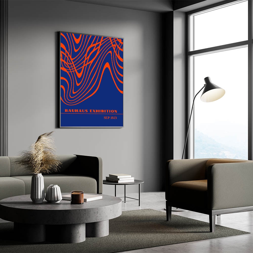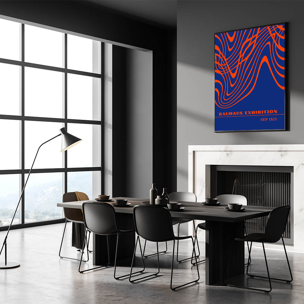 Bring a sense of movement and energy to your space with this bohemian wall art, featuring a bold geometric design from the Bauhaus Exhibition Sep 1923. The dynamic combination of flowing orange lines against a deep blue background creates a striking visual that’s perfect for modern, eclectic, or bohemian interiors. This artistic bohemian-style canvas print makes an eye-catching focal point for any room, whether in a living room, bedroom, or office.