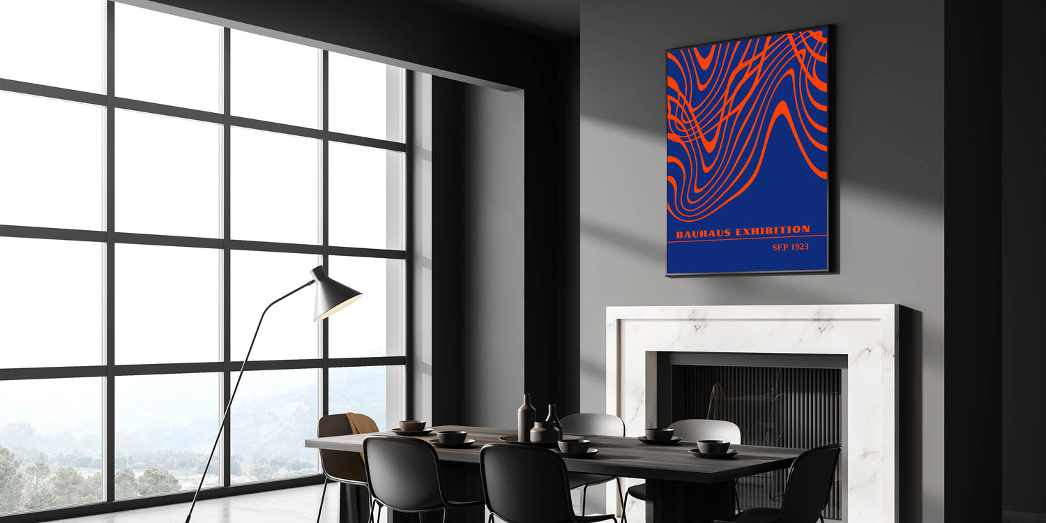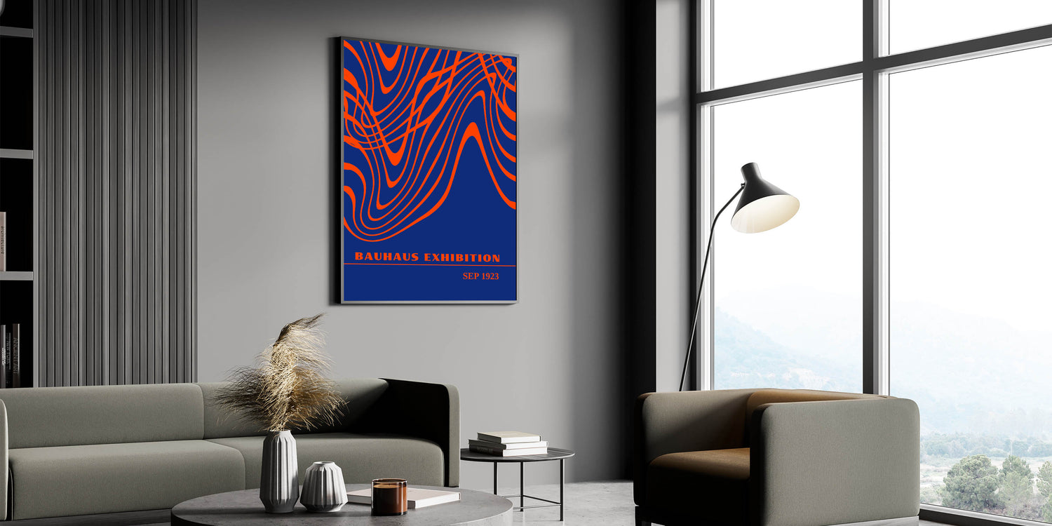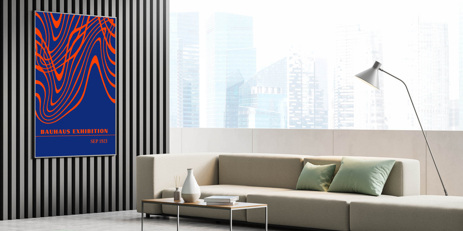 Bring a sense of movement and energy to your space with this bohemian wall art, featuring a bold geometric design from the Bauhaus Exhibition Sep 1923. The dynamic combination of flowing orange lines against a deep blue background creates a striking visual that’s perfect for modern, eclectic, or bohemian interiors. This artistic bohemian-style canvas print makes an eye-catching focal point for any room, whether in a living room, bedroom, or office.