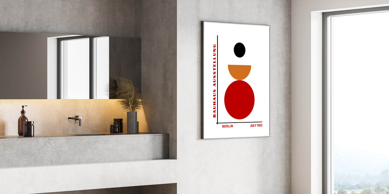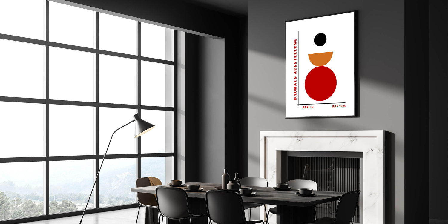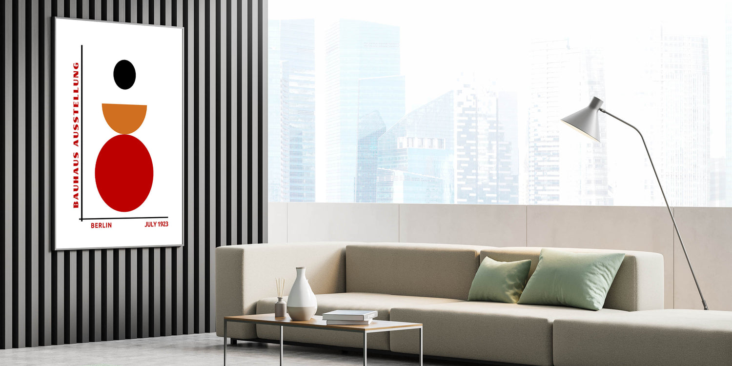 Product Description (175-225 words): Transform your living space with this unique bohemian artwork for modern spaces inspired by the Bauhaus movement. Featuring a striking combination of geometric shapes in bold black, orange, and red, this design brings together a vibrant and minimalist aesthetic. Perfect for those who appreciate eclectic boho wall art that adds a touch of artistic flair to any interior, this piece is available in various high-quality materials, including stretched canvas, framed canvas, acrylic glass, and more.