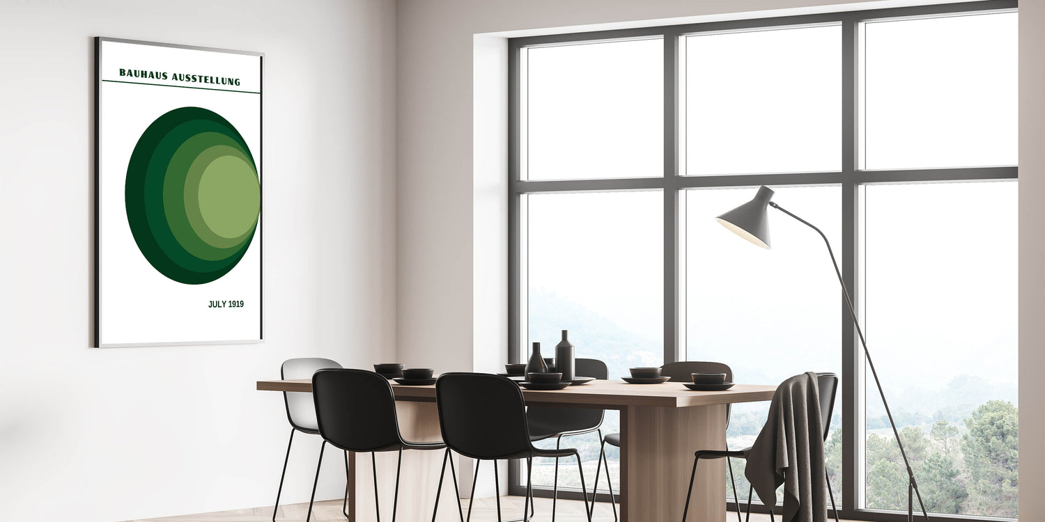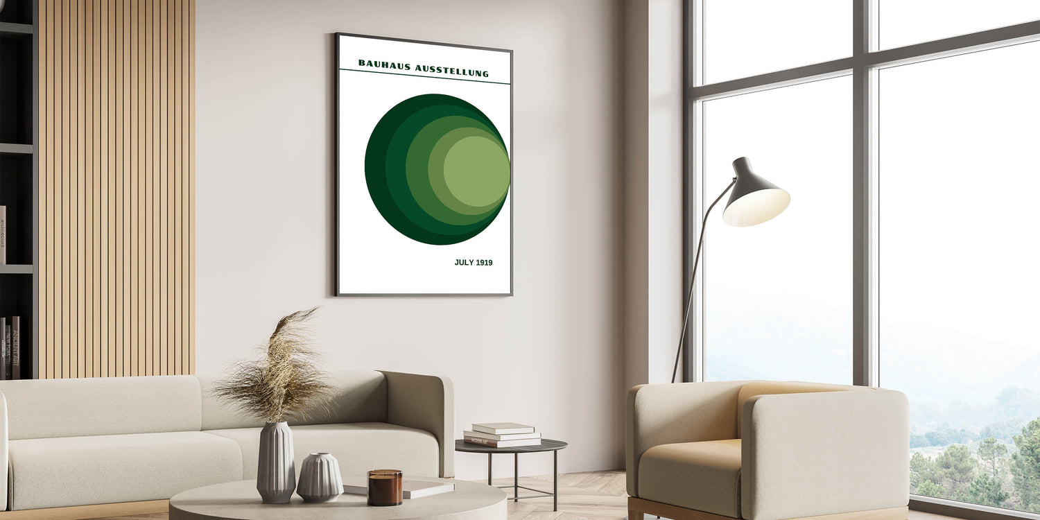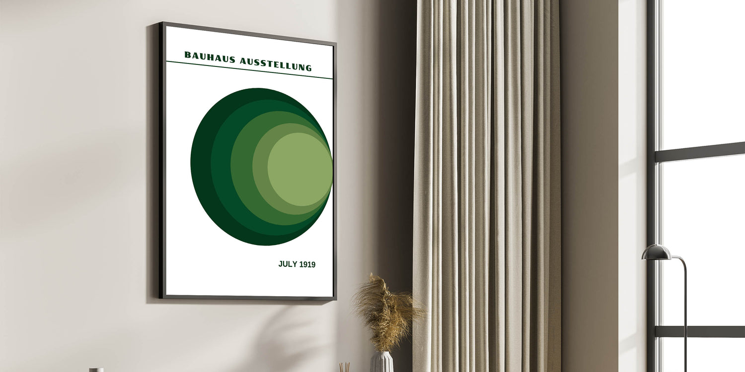 This green circle gradient art print captures the timeless elegance of Bauhaus design, offering a perfect balance of structure and nature. Ideal for those looking to enhance their space with a unique, calming, and sophisticated piece.