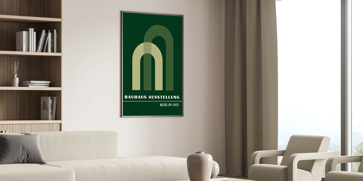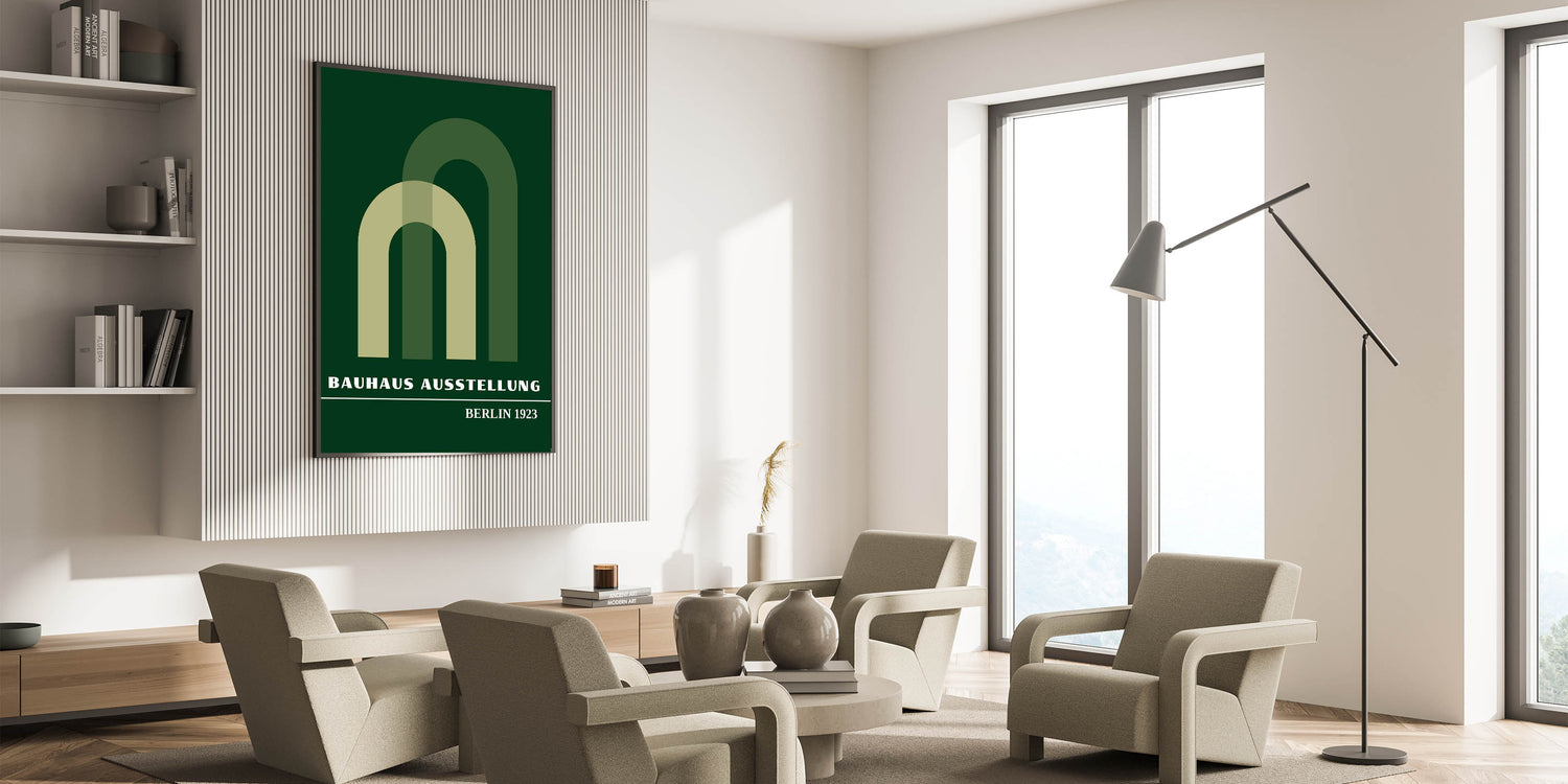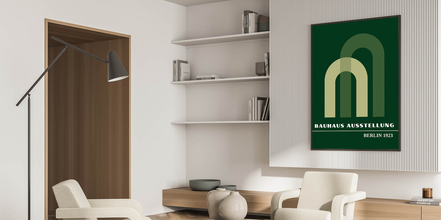 This Bauhaus-inspired wall art features an elegant composition of overlapping arches in various shades of green. The minimalist design captures the essence of modern art while bringing natural tones into your living space. Perfect for eclectic, boho, or contemporary interiors, this piece adds a structured yet calming presence to any room, making it an ideal choice for a living room, bedroom, or office.