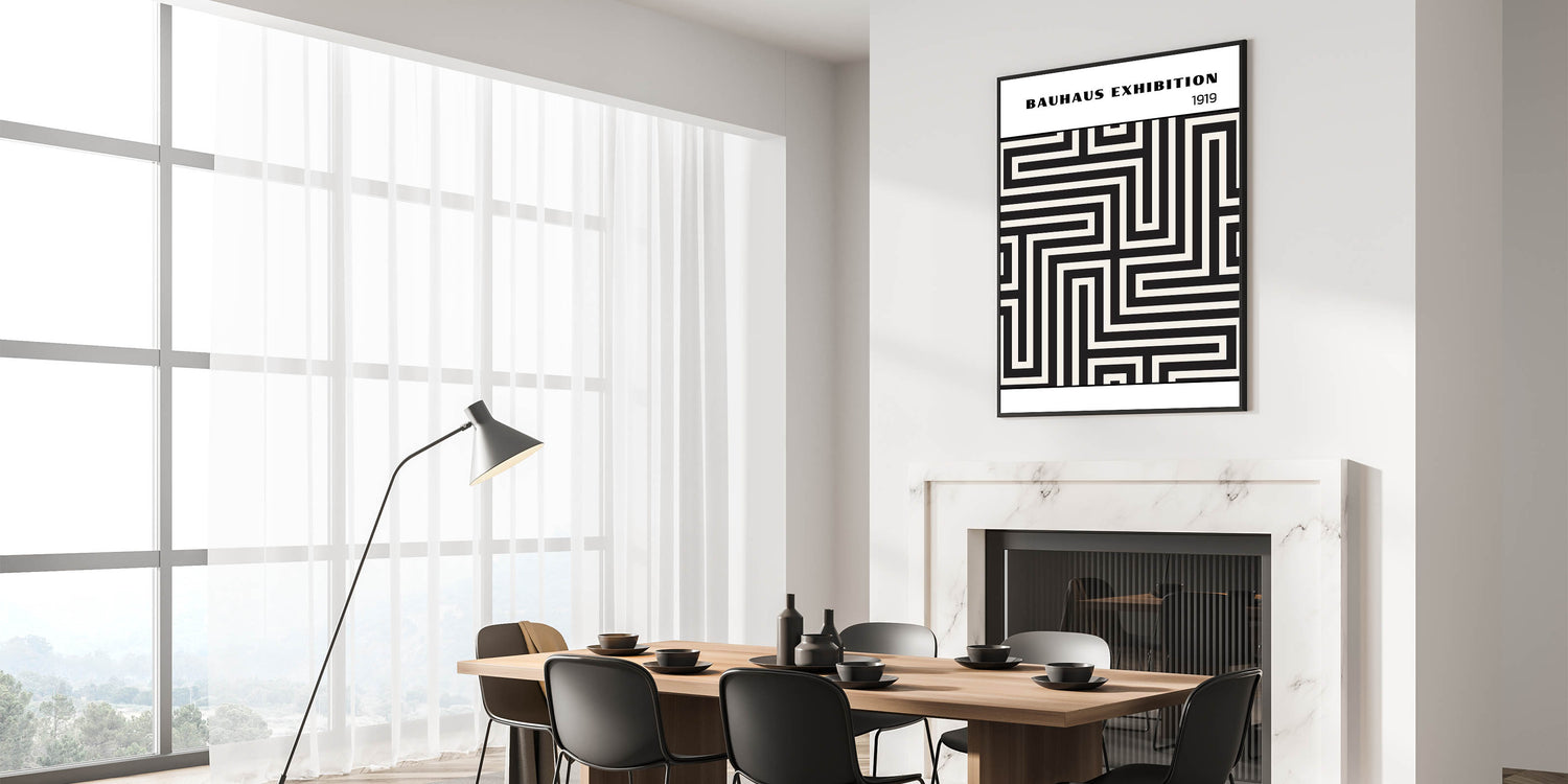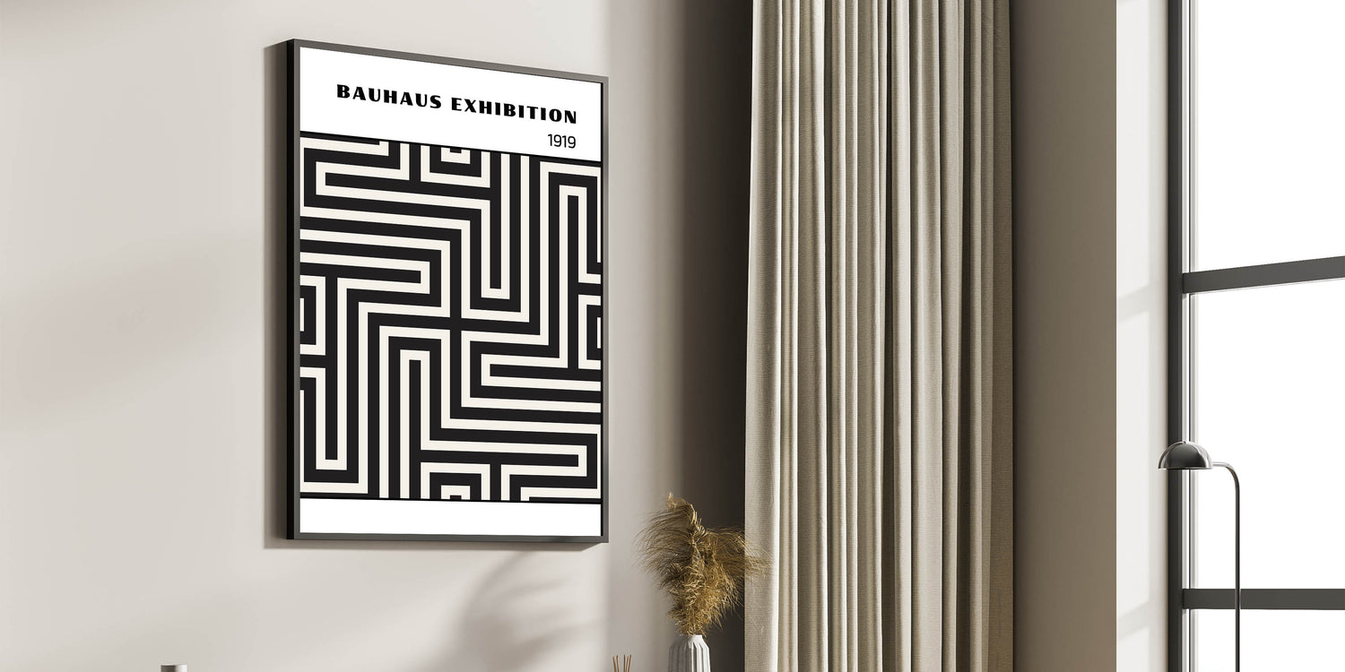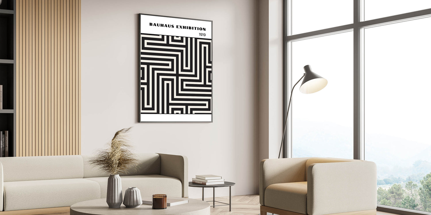 This Bauhaus-inspired wall art showcases a mesmerizing maze-like geometric design in striking black and white. The bold lines and intricate pattern create a dynamic and modern aesthetic, making it the perfect focal point for contemporary, boho, or eclectic interiors. Ideal for living rooms, bedrooms, or offices, this artwork brings structure and style to your space, evoking the clean lines and precision of Bauhaus design.