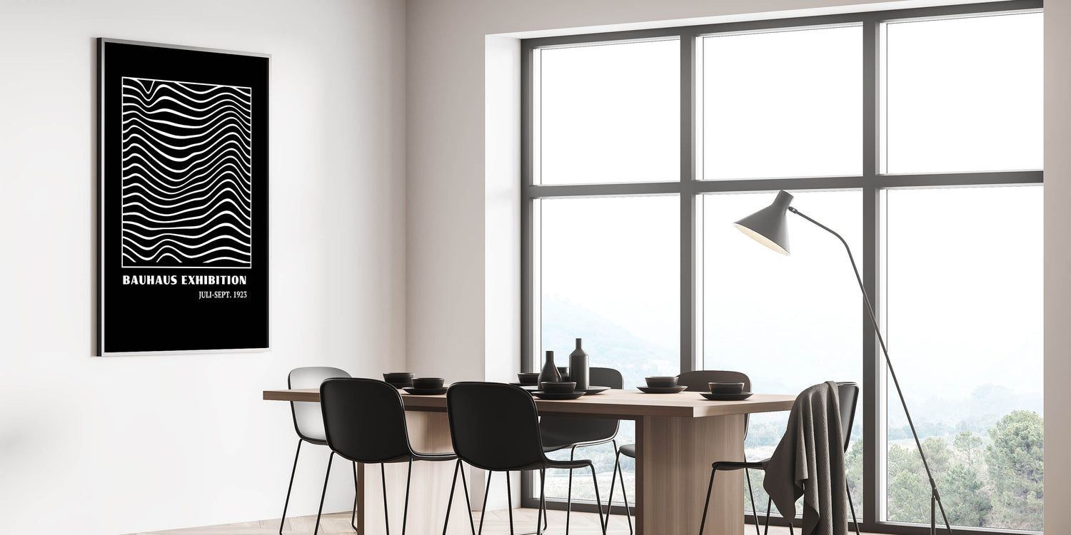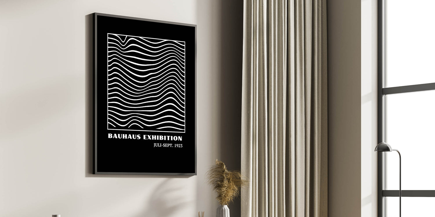 This Bauhaus-inspired wall art showcases a mesmerizing pattern of wavy lines within a structured square frame, offering a dynamic and modern aesthetic. The contrasting black and white design brings a minimalist, geometric flair to any space, making it an ideal piece for modern, boho, or eclectic interiors. Whether hung in a living room, office, or bedroom, this artwork adds depth and visual interest with its flowing lines and geometric balance.