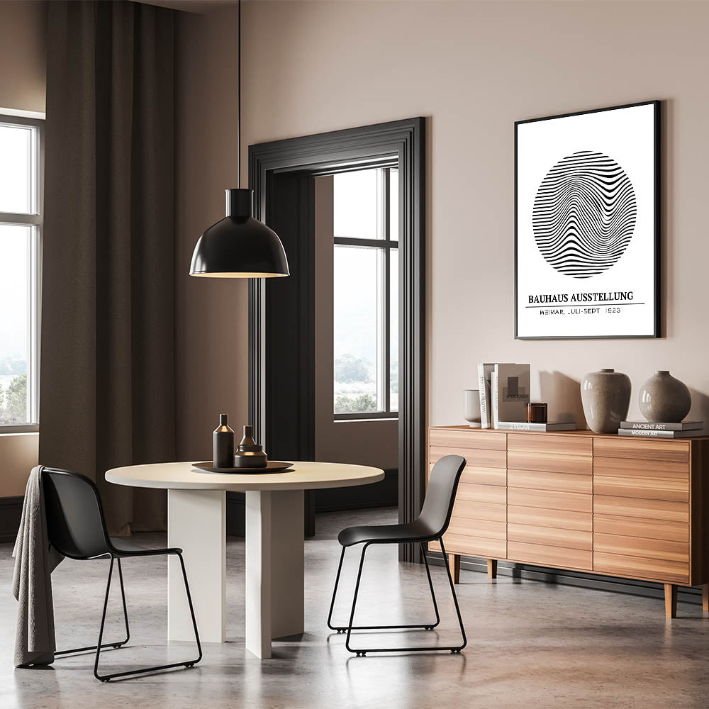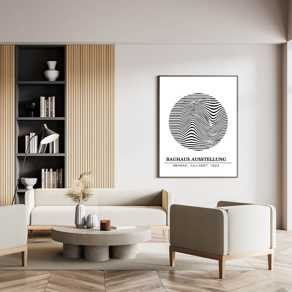 Transform your space with this captivating Bauhaus design that combines structure and flow. This artwork is ideal for those who appreciate the intersection of geometric precision and organic movement in their decor, bringing an artistic and eclectic vibe to your home.
