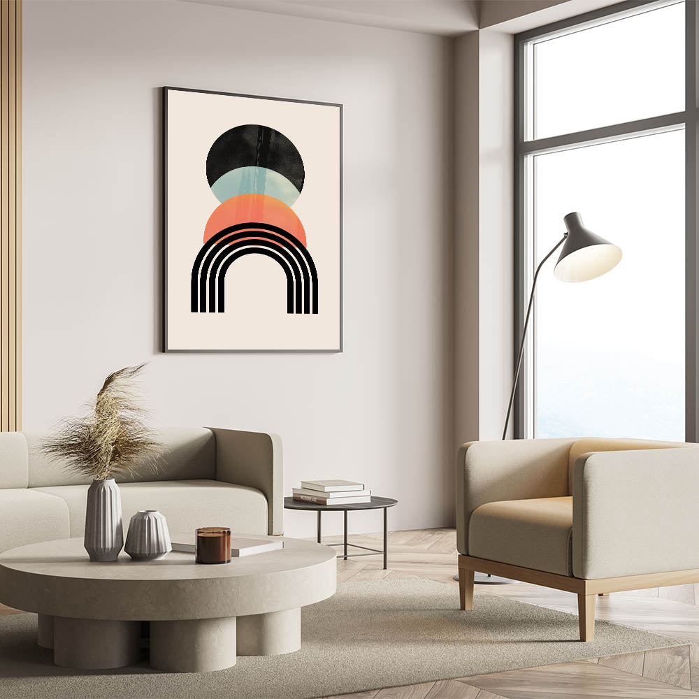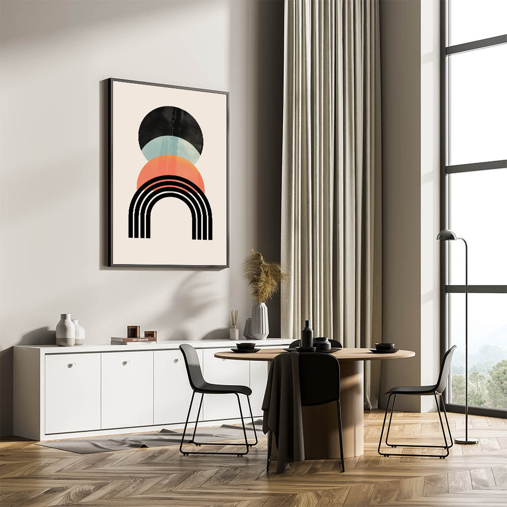 Enhance your home’s décor with this beautifully minimalist Bohemian wall art. Featuring a unique composition of geometric shapes and soft, muted tones, this artwork blends effortlessly into any modern or eclectic space. The harmonious mix of black, teal, and peach creates a sense of balance and tranquility, making it ideal for spaces that embrace a boho-chic vibe. This eclectic boho wall hanging is perfect for living rooms, bedrooms, or any space that needs a touch of artistic flair.