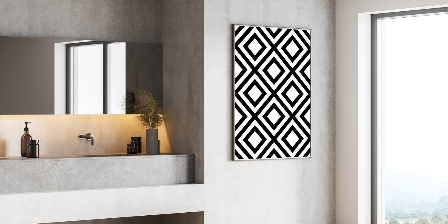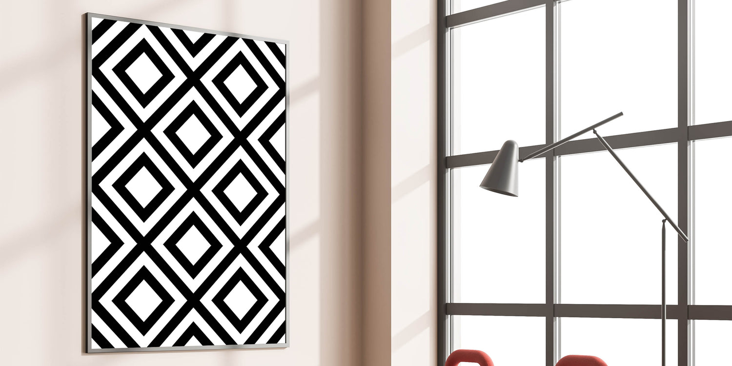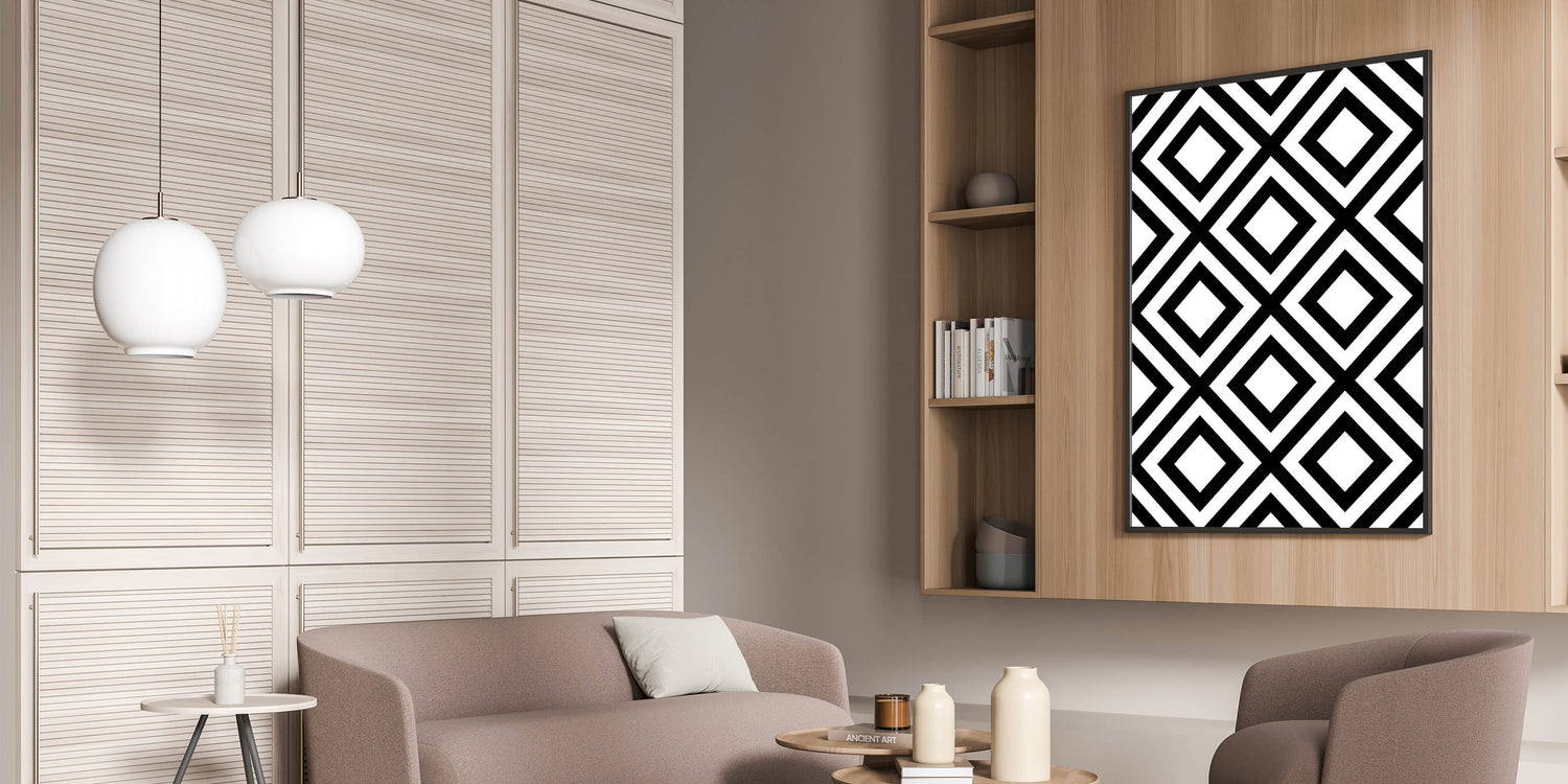 This striking Bauhaus-inspired wall art features a bold diamond geometric pattern in black and white, offering a visually captivating design that brings both structure and energy to any space. The sharp lines and repeating diamond shapes create a modern and minimalist aesthetic that complements boho, eclectic, or contemporary interiors. Ideal for living rooms, offices, or bedrooms, this piece is perfect for anyone looking to make a statement with their decor.