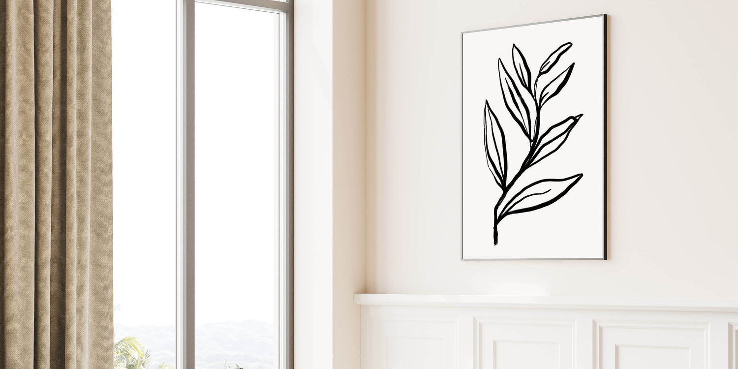 Add a bold, nature-inspired element to your home with this striking Bohemian wall art. Featuring a thick black line drawing of a botanical element, this artwork brings a sense of strength and simplicity to any modern or eclectic interior. Perfect for creating a statement while maintaining a minimalist aesthetic, this piece is ideal for living rooms, bedrooms, or even creative office spaces.