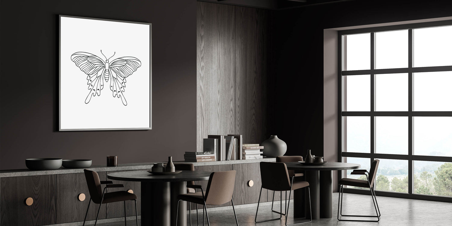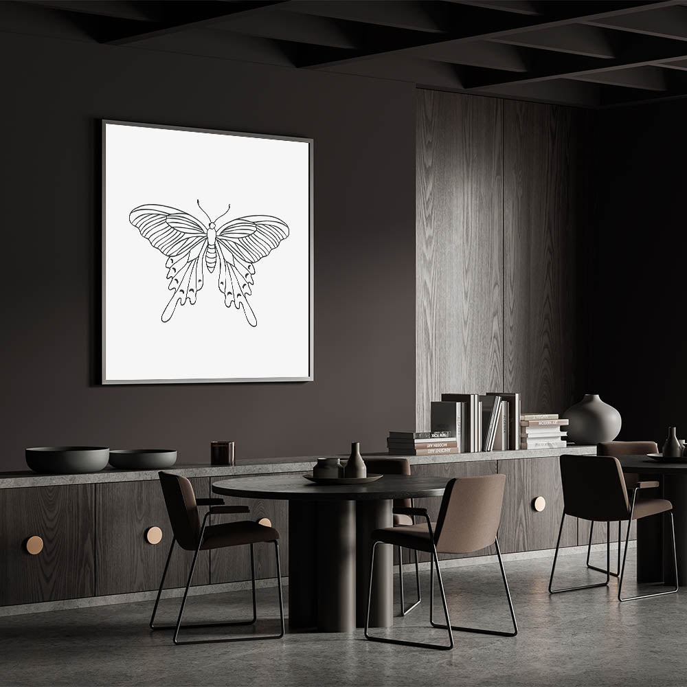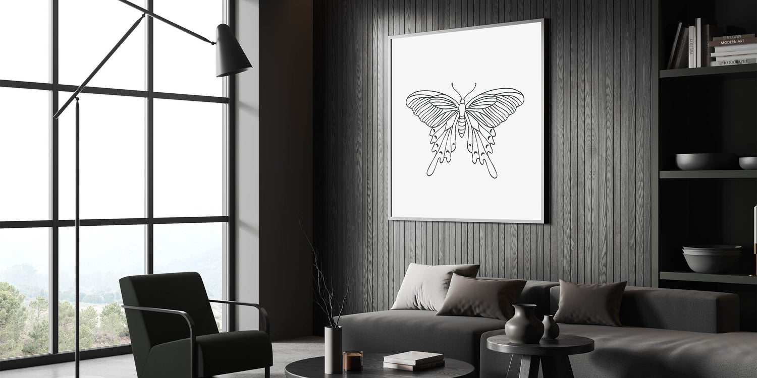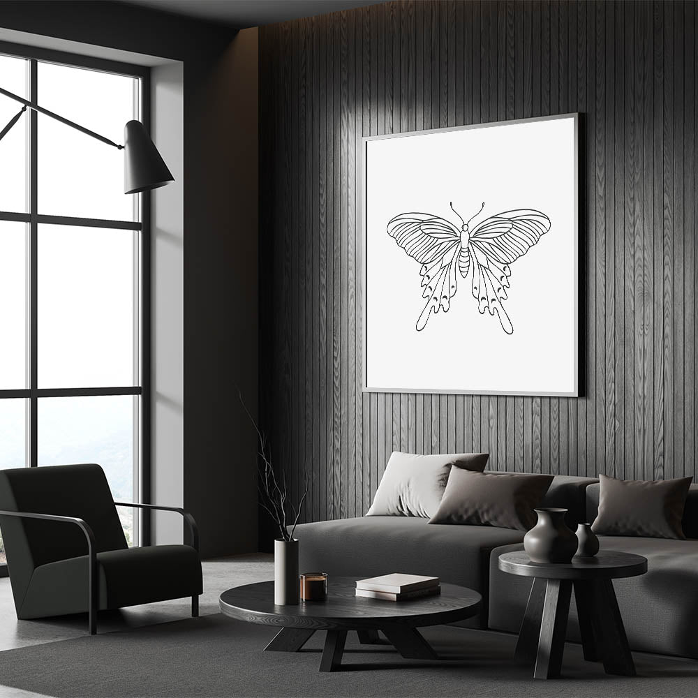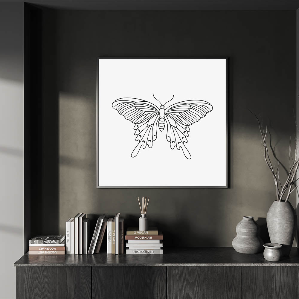 Bring the delicate beauty of nature into your home with this stunning Bohemian wall art featuring a detailed butterfly illustration. The simple, minimalist linework emphasizes the intricate details of the butterfly's wings, creating a harmonious balance between elegance and nature. This unique boho-inspired piece adds a sense of tranquility and refinement to any room, whether it's your living room, bedroom, or home office. The clean black-and-white design allows it to blend seamlessly with modern and eclectic interior styles, enhancing your space with a touch of natural beauty.