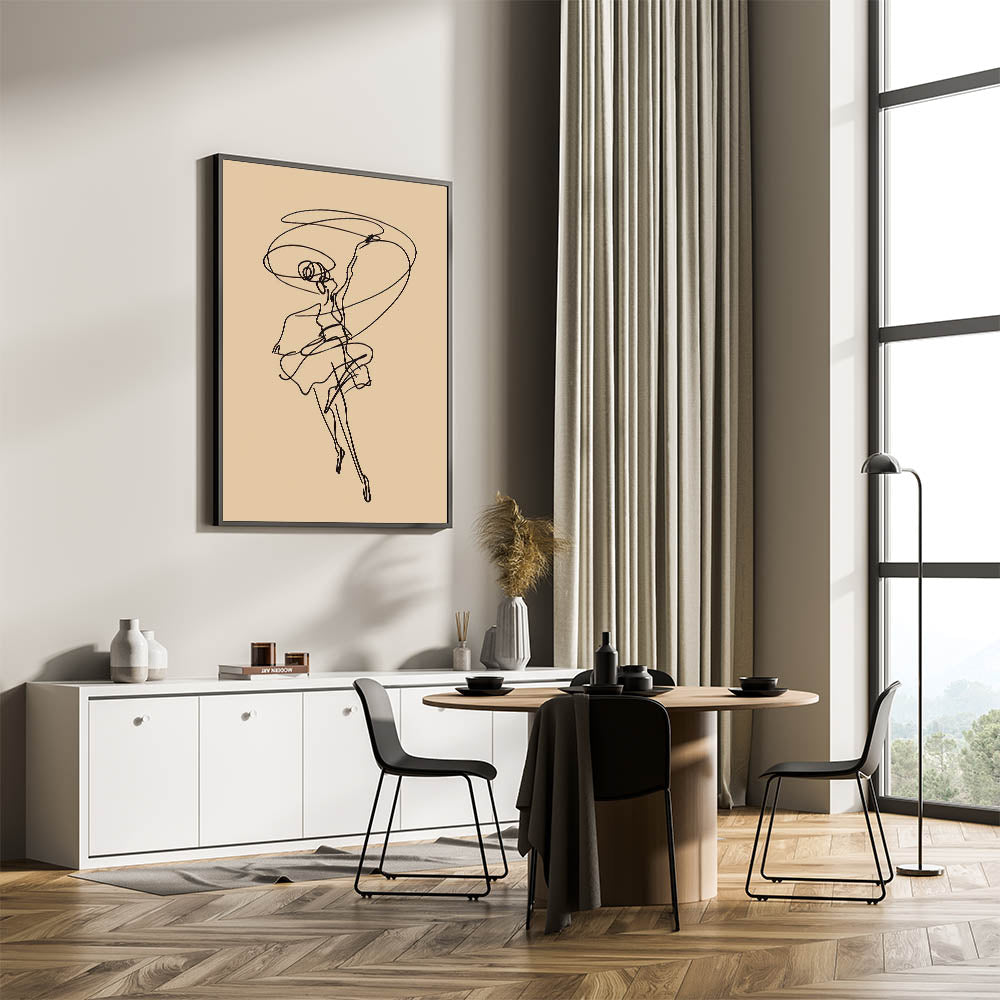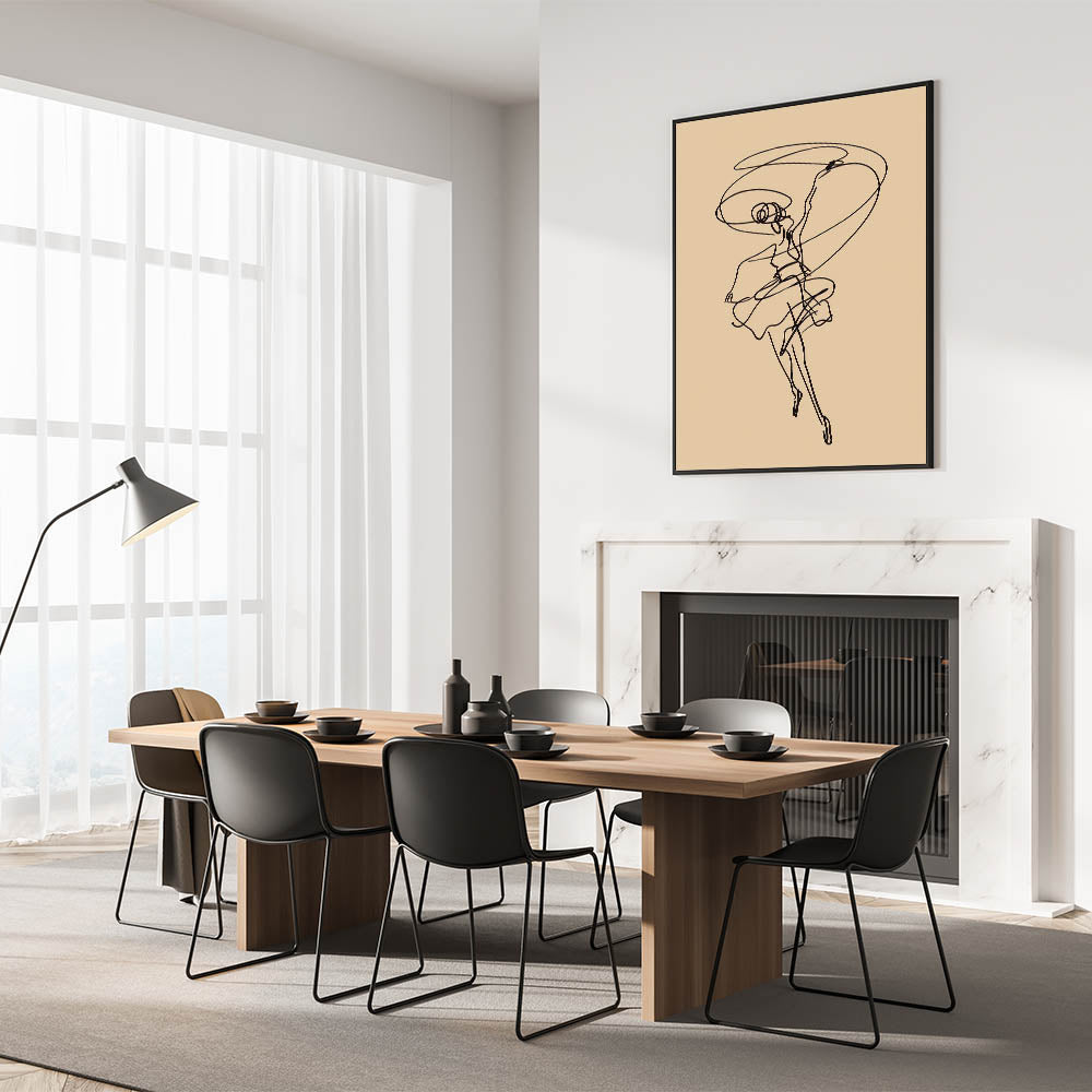 This artwork is a fantastic choice for anyone who loves the beauty of dance and motion. Its minimalist line drawing offers a striking focal point for your walls, blending effortlessly into modern and eclectic spaces with a touch of boho flair.