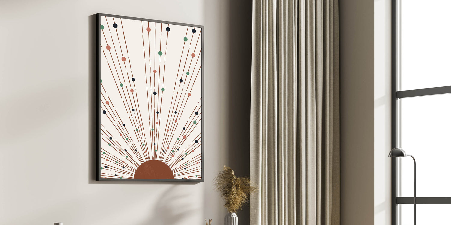 Bohemian Wall Art | Earthy Sunburst Abstract Design | Boho Decor