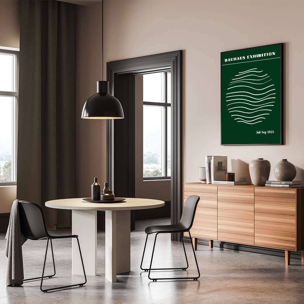 Introduce a touch of modern sophistication with this unique Bohemian artwork, inspired by the iconic Bauhaus Exhibition of 1923. Perfect for those who love to blend contemporary style with eclectic boho vibes, this piece will transform any space into an artistic haven.