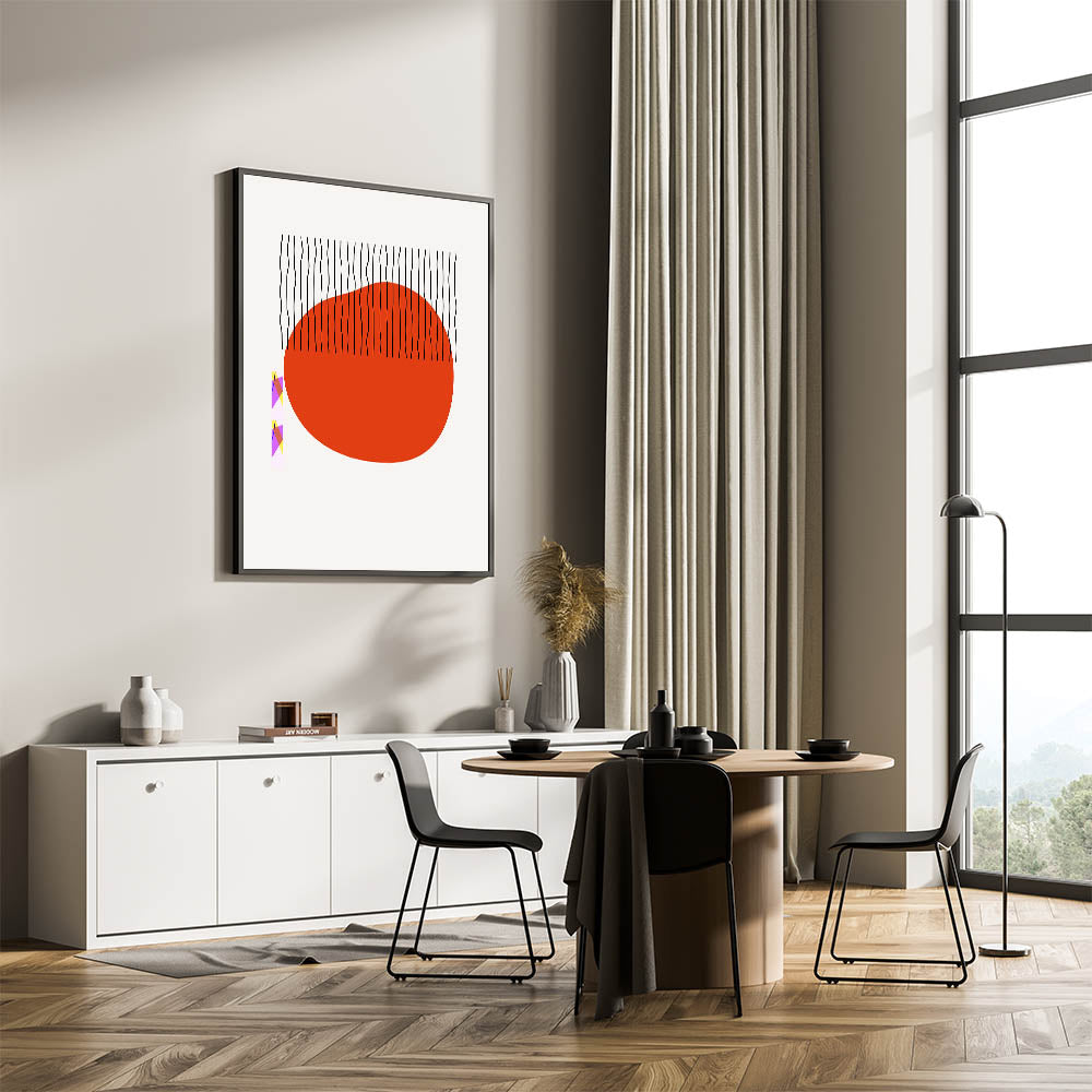 - Unique Bohemian artwork with a bold, minimalist design in red and black.