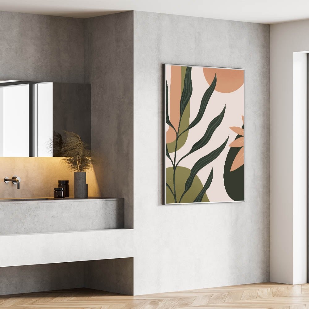 Enhance your home with the timeless elegance of this Bohemian wall art. Featuring an abstract plant motif in soft greens and warm earthy tones, this piece perfectly captures the essence of boho chic style. Its vibrant yet calming design adds a touch of nature-inspired charm to any space, making it a beautiful statement piece for your living room, bedroom, or office.