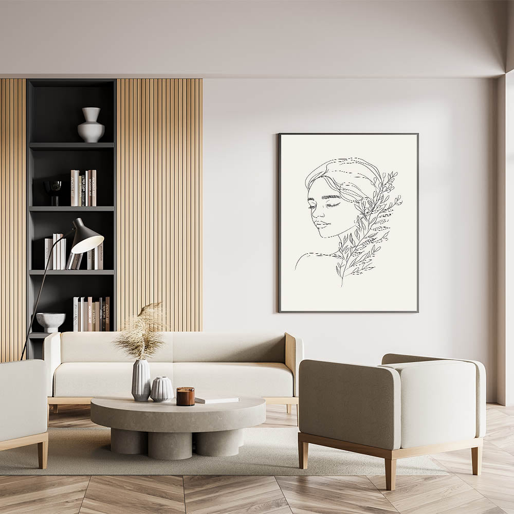 This artwork is ideal for those who appreciate both feminine beauty and nature's elegance. The delicate linework and natural themes make it a versatile piece that blends seamlessly into modern, boho-chic spaces, offering a unique focal point for your walls.